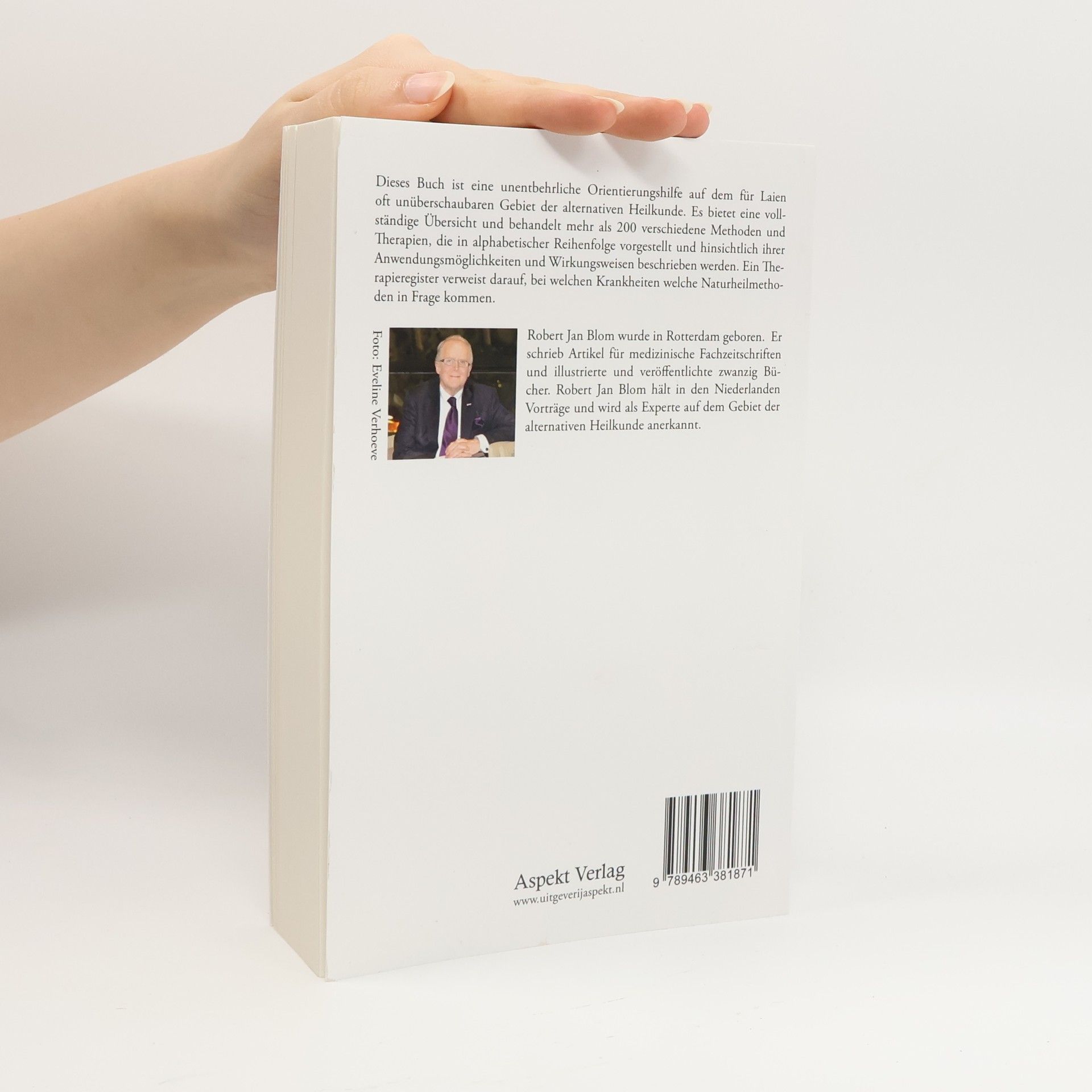 Dieses Buch ist eine unentbehrliche Orientierungshilfe auf dem fur Laien oft unuberschaubaren Gebiet der alternativen Heilkunde. Es bietet eine vollstandige Ubersicht und behandelt mehr als 200 verschiedene Methoden und Therapien, die in alphabetischer Reihenfolge vorgestellt und hinsichtlich ihrer Anwendungsmoglichkeiten und Wirkungsweisen beschrieben werden. Ein Therapieregister verweist darauf, bei welchen Krankheiten welche Naturheilmethoden in Frage kommen. Robert Jan Blom wurde in Rotterdam geboren. Er schrieb Artikel fur medizinische Fachzeitschriften und illustrierte und veroffentlichte zwanzig Bucher. Robert Jan Blom halt in den Niederlanden Vortrage und wird als Experte auf dem Gebiet der alternativen Heilkunde anerkannt.