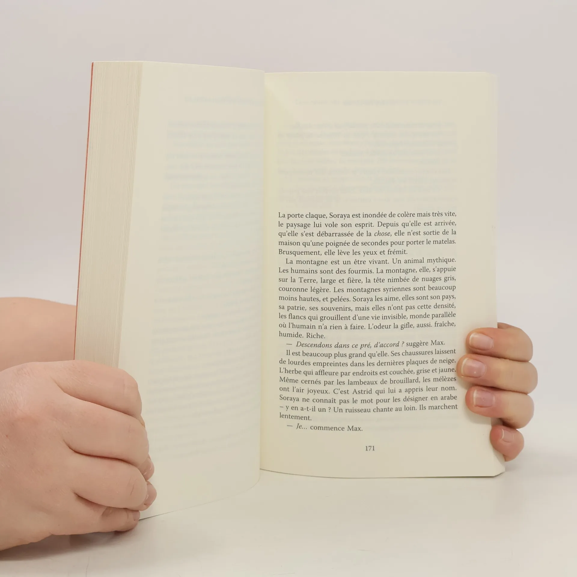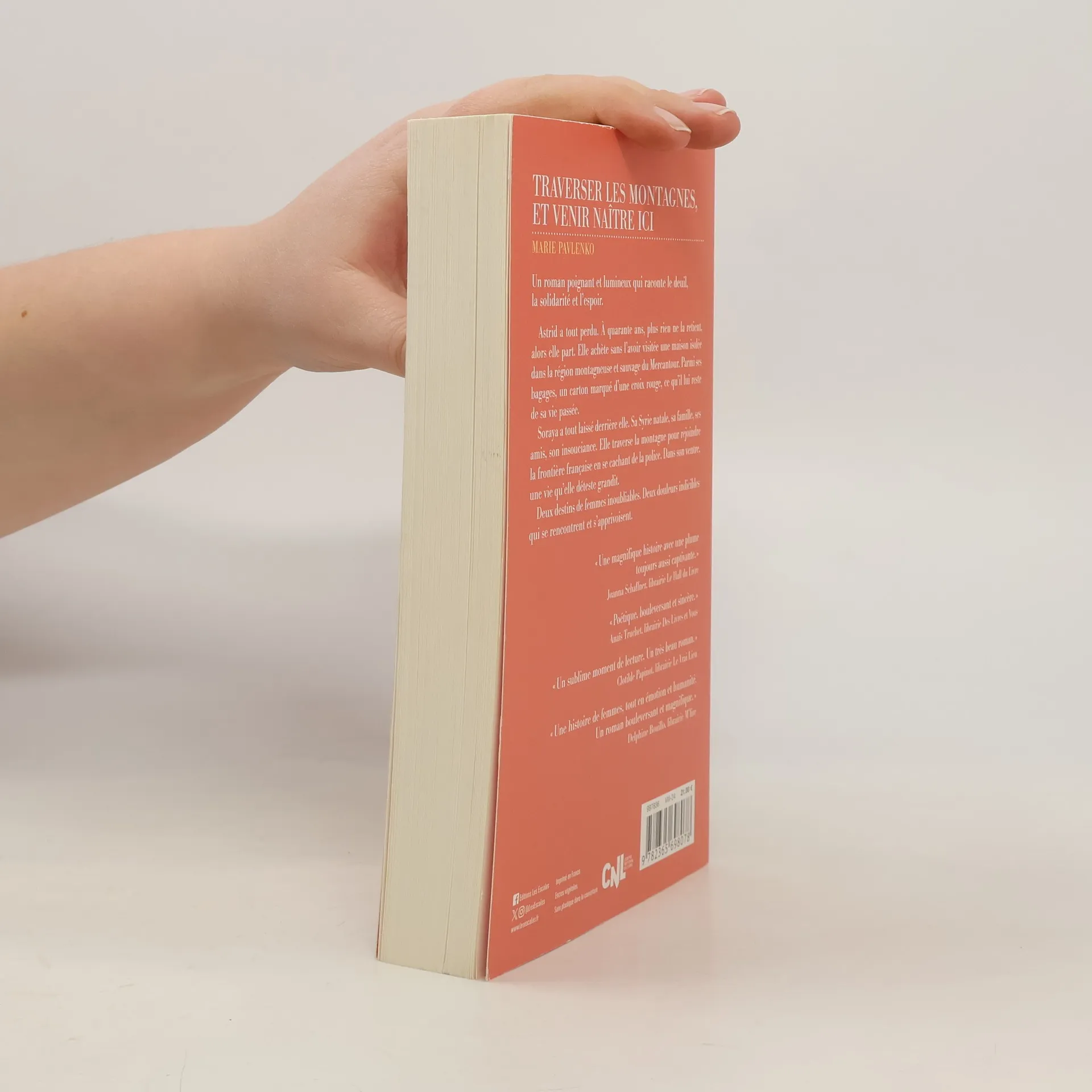 "Un roman poignant et lumineux qui raconte le deuil, la solidarité et l'espoir. Astrid a tout perdu. À quarante ans, plus rien ne la retient, alors elle part. Elle achète sans l'avoir visitée une maison isolée dans la région montagneuse et sauvage du Mercantour. Parmi ses bagages, un carton marqué d'une croix rouge, ce qu'il lui reste de sa vie passée. Soraya a tout laissé derrière elle. Sa Syrie natale, sa famille, ses amis, son insouciance. Elle traverse la montagne pour rejoindre la frontière française en se cachant de la police. Dans son ventre, une vie qu'elle déteste grandit. Deux destins de femmes inoubliables. Deux douleurs indicibles qui se rencontrent et s'apprivoisent."--Page 4 of cover.