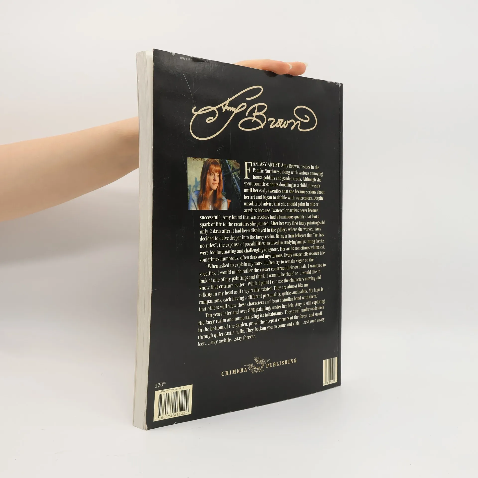 The Art of Amy Brown is the first collection of Amy Brown's wildly popular art. It was published by Chimera Publishing in 2003. The book is 157 pages of art, with a commentary by Amy Brown for every piece of artwork. The Art of Amy Brown has an introduction by the well-known author Charles de Lint. There are three editions of this book—a paperback, a hardcover, and a special leather-bound edition limited to 750 copies, which will be signed by Amy Brown and Charles de Lint.