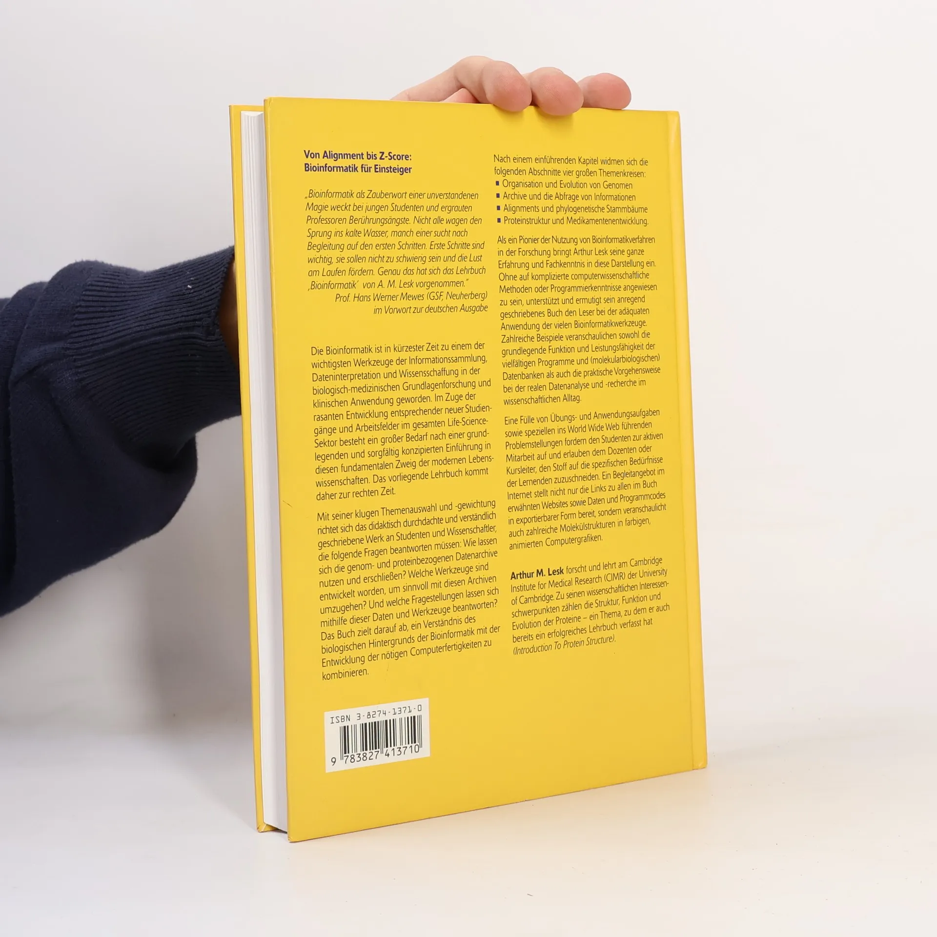 Bioinformatik ist eine Wissenschaftsdisziplin und ein Methodenfeld, das in der heutigen Forschung und klinischen Anwendung zu einem der wichtigsten Werkzeuge der Informationssammlung, Dateninterpretation und Wissensschaffung geworden ist. Das vorliegende Lehrbuch kommt zur rechten Zeit und erfullt den grossen Bedarf nach einer grundlegenden und sorgfaltig konzipierten Einfuhrung in diesen fundamentalen Zweig der modernen Lebenswissenschaften. Als ein Pionier der Nutzung von Bioinformatikverfahren in der Forschung bringt Arthur Lesk seine ganze Erfahrung und Fachkenntnis in diese Darstellung ein. Das Buch zielt darauf ab, ein Verstandnis des biologischen Hintergrunds der Bioinformatik mit der Entwicklung der notigen Computerfertigkeiten zu kombinieren. Ohne auf komplizierte computerwissenschaftliche Methoden oder Programmierkenntnisse angewiesen zu sein, unterstutzt und ermutigt das anregend geschriebene Buch den Leser bei der adaquaten Anwendung der vielen Bioinformatikwerkzeuge. Zahlreiche Ubungen und Aufgaben sowie innovative webbasierte Problemstellungen ("Webleme"/"WWW-Fragen") fordern den Studenten zur aktiven Teilnahme statt und erlauben dem Dozenten oder Kursleiter, das Material auf die spezifischen Bedurfnisse der Lernenden zuzuschneiden. Die begleitende (englischsprachige) Website des Originalverlags fuhrt von den im Buch prasentierten Aufgaben und Programmen zu interaktiven Links und ermoglicht es dem Leser somit, ein praktisches Verstandnis und Wertschatzung der Macht der Bioinformatik als Forschungswerkzeug zu entwickeln. Unter der URL <a target="_blank" rel="noopener nofollow" href="http://www.oup.com/uk/lesk/bioinf/">www.oup.com/uk/lesk/bioinf/</a> sind folgende Angebote abzurufen: - Links zu allen im Buch erwahnten Websites - Grafiken in hoher Qualitat einschliesslich farbiger Animationen von Strukturschemata - Material aus dem Buch, das sinnvollerweise in computerlesbarer Form zur Verfugung steht, etwa Daten fur die Aufgaben und Ubungen sowie alle Programme"