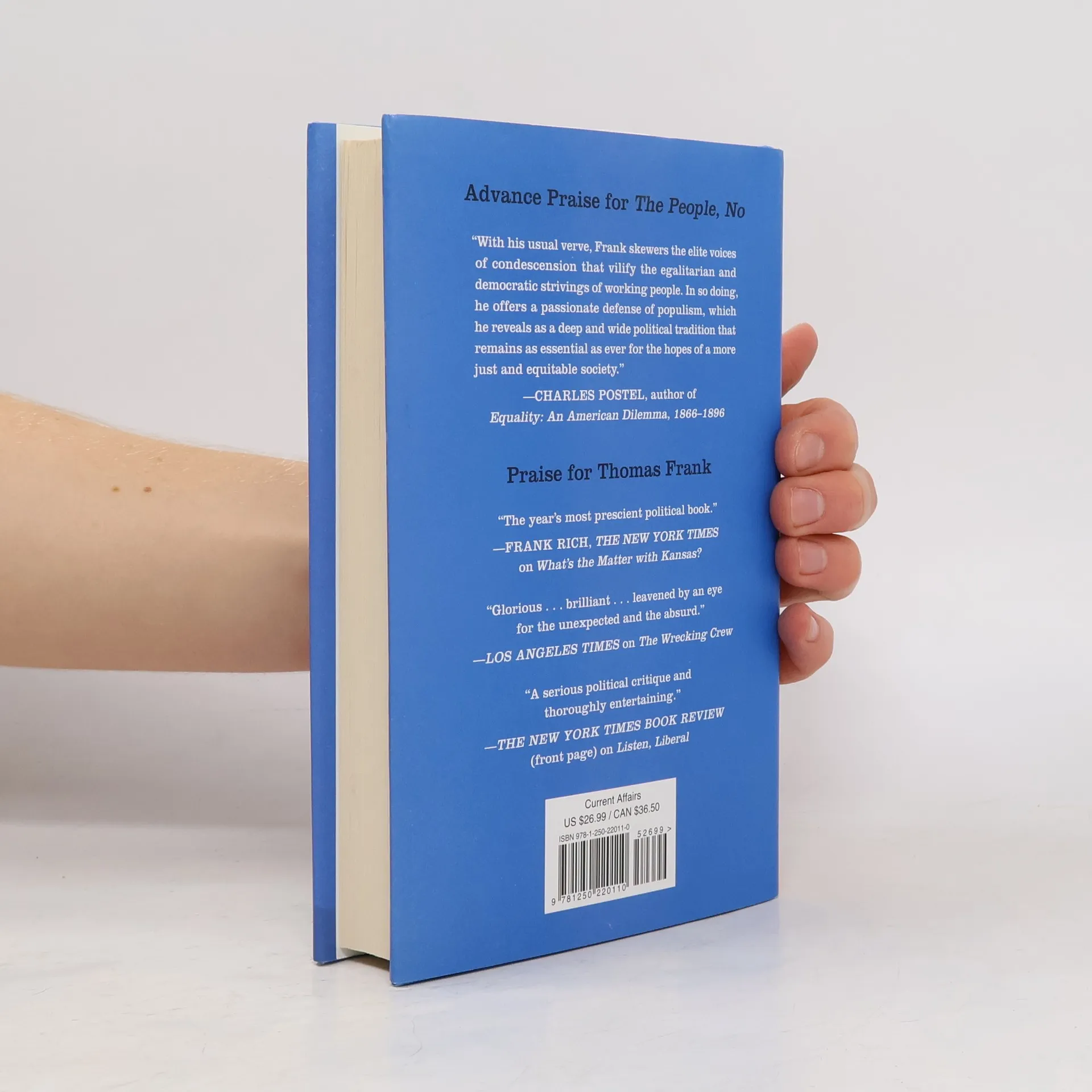 <b>From the prophetic author of the now-classic <i>What’s the Matter with Kansas? </i>and<i> Listen, Liberal</i>, an eye-opening account of populism, the most important—and misunderstood—movement of our time. </b>Rarely does a work of history contain startling implications for the present, but in <i>The People, No </i>Thomas Frank pulls off that explosive effect by showing us that everything we think we know about populism is wrong. Today “populism” is seen as a frightening thing, a term pundits use to describe the racist philosophy of Donald Trump and European extremists. But this is a mistake. The real story of populism is an account of enlightenment and liberation; it is the story of American democracy itself, of its ever-widening promise of a decent life for all. Taking us from the tumultuous 1890s, when the radical left-wing Populist Party—the biggest mass movement in American history—fought Gilded Age plutocrats to the reformers’ great triumphs under Franklin Roosevelt and Harry Truman, Frank reminds us how much we owe to the populist ethos. Frank also shows that elitist groups have reliably detested populism, lashing out at working-class concerns. The anti-populist vituperations by the Washington centrists of today are only the latest expression. Frank pummels the elites, revisits the movement’s provocative politics, and declares true populism to be the language of promise and optimism. <i>The People, No</i> is a ringing affirmation of a movement that, Frank shows us, is not the problem of our times, but the solution for what ails us.