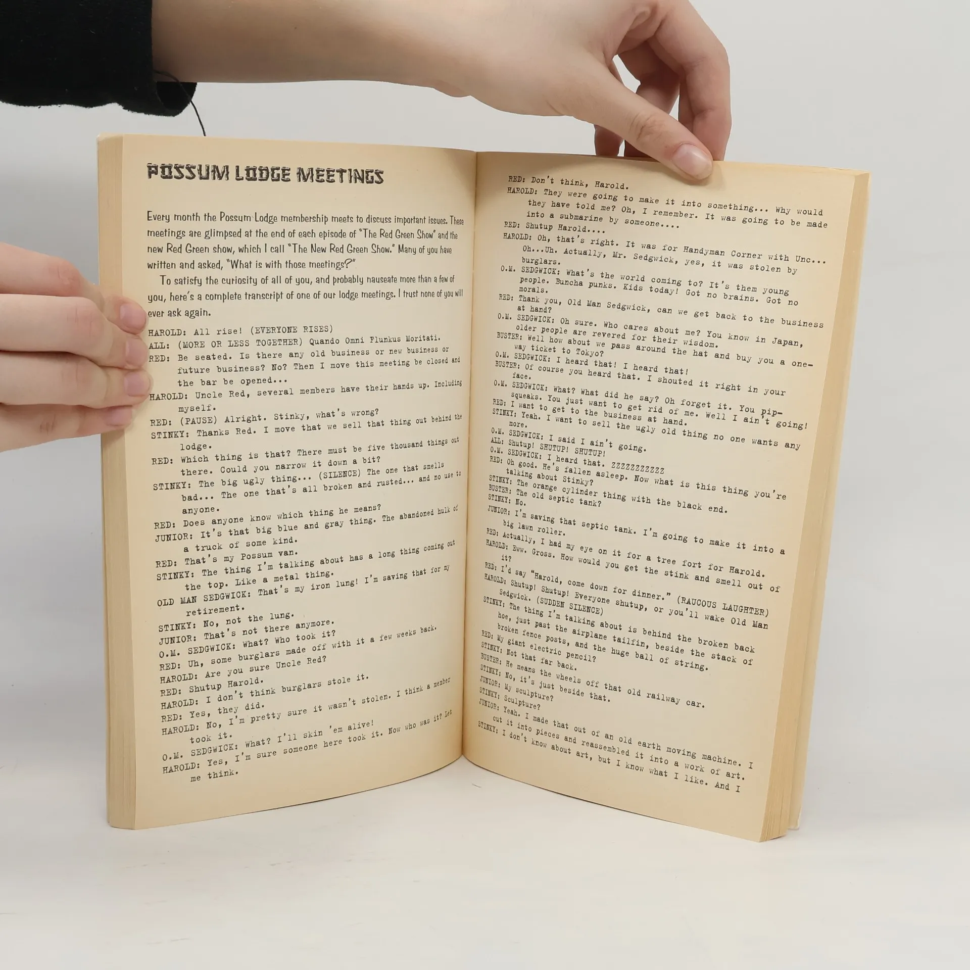 Red, Bill and Harold, flushed out by their international success on the small screen are proud to being the Possum's-eye-view of the world to Canadian literature. It's all here — the Possum Lodge Charter and Pledge, camping tips, ice fishing hints, the Buddy System, Red Talks to Teens, Buying Tips, Handyman Corner, classifieds, and more songs and poems than you'll know what to do with. And this handy little gadget you have in your hand works even if the dog has hidden the remote.