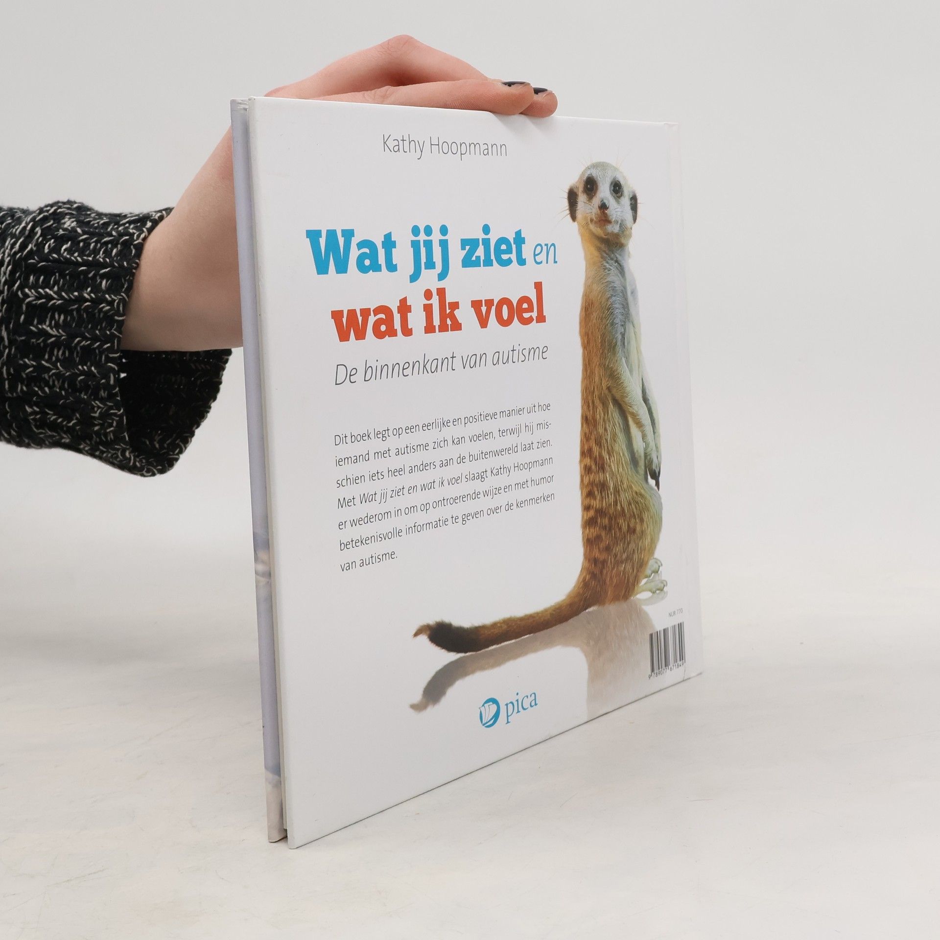 In navolging van haar bestsellers Alle honden hebben ADHD en Alle katten hebben Asperger laat Kathy Hoopmann in haar nieuwste boek aan de hand van wederom prachtige en vaak grappige dierenfoto's zien hoe kinderen en volwassenen met autisme (kunnen) zijn. Op unieke en ontroerende wijze gaat ze in Wat jij ziet en wat ik voel in op de algemene kenmerken die voorkomen bij mensen met autisme, zoals: * Moeite met sociale situaties * Moeite met het begrijpen van non-verbale communicatie * Een grote loyaliteit * Over- of ondergevoeligheid van de zintuigen * Behoefte aan routines, voorspelbaarheid en structuur * Het vermogen om heel veel kennis over één onderwerp te vergaren * Een unieke kijk op de wereld Natuurlijk heeft niet iedere persoon met autisme alle kenmerken die in dit boek worden genoemd, en hebben ze ook eigenschappen die hier helemaal niet aan de orde komen. Zowel in hun persoonlijkheid als hun gedrag kunnen twee mensen met autisme totaal verschillend zijn. Kathy Hoopmann wil vooral meegeven dat je, door je te verdiepen in hun sterke en minder sterke kanten, hen kunt helpen om het beste uit zichzelf naar boven te halen.