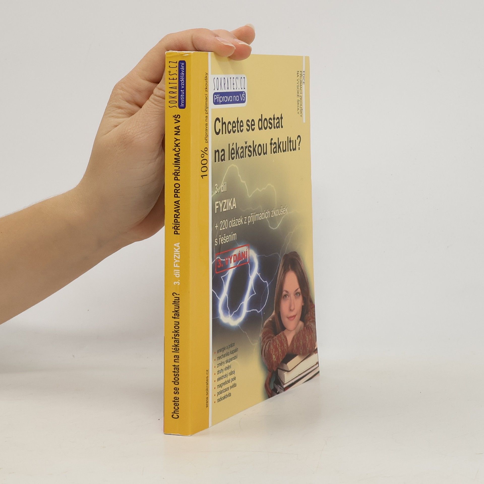Kniha je jedinečnou pomůckou určenou uchazečům o studium na lékařských fakultách, obsahuje teoretické shrnutí problematiky + 220 testových otázek z minulých přijímacích zkoušek s řešením, a to z fyziky; určeno: lékařské fakulty UK v Praze, Lékařská fakulta MU v Brně, Lékařská fakulta UP v Olomouci, Veterinární a farmaceutická univerzita Brno a ostatní VŠ tohoto směru.