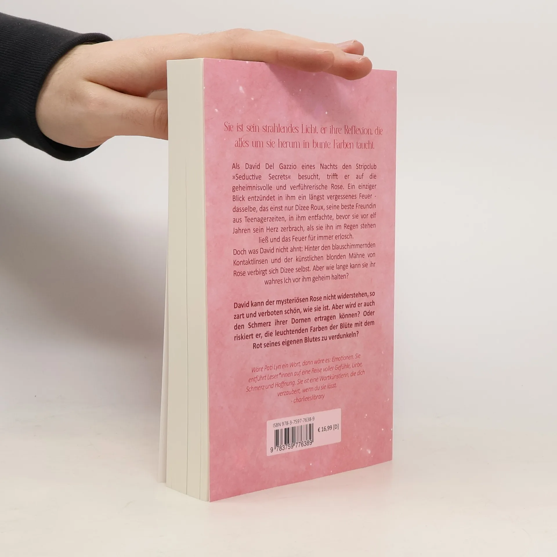 Sie ist sein strahlendes Licht, er ihre Reflexion, die alles um sie herum in bunte Farben taucht.Als David Del Gazzio eines Nachts den Stripclub »Seductive Secrets« besucht, trifft er auf die geheimnisvolle und verführerische Rose. Ein einziger Blick entzündet in ihm ein längst vergessenes Feuer - dasselbe, das einst nur Dizee Roux, seine beste Freundin aus Teenagerzeiten, in ihm entfachte, bevor sie vor elf Jahren sein Herz zerbrach, als sie ihn im Regen stehen ließ und das Feuer für immer erlosch. Doch was David nicht Hinter den blauschimmernden Kontaktlinsen und der künstlichen blonden Mähne von Rose verbirgt sich Dizee selbst.Aber wie lange kann sie ihr wahres Ich vor ihm geheim halten?David kann der mysteriösen Rose nicht widerstehen, so zart und verboten schön, wie sie ist.Aber wird er auch den Schmerz ihrer Dornen ertragen können?Oder riskiert er, die leuchtenden Farben der Blüte mit dem Rot seines eigenen Blutes zu verdunkeln?Wäre Pati Lyn ein Wort, dann wäre Emotionen. Sie entführt Leser*innen auf eine Reise voller Gefühle, Liebe, Schmerz und Hoffnung. Sie ist eine Wortkünstlerin, die dich verzaubert, wenn du sie lässt. - charlieeslibrary