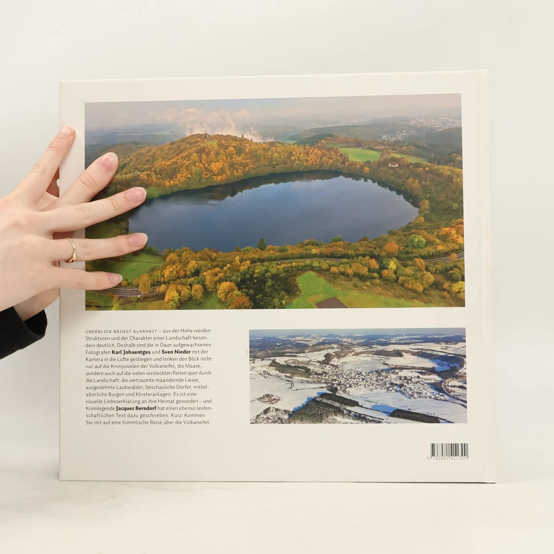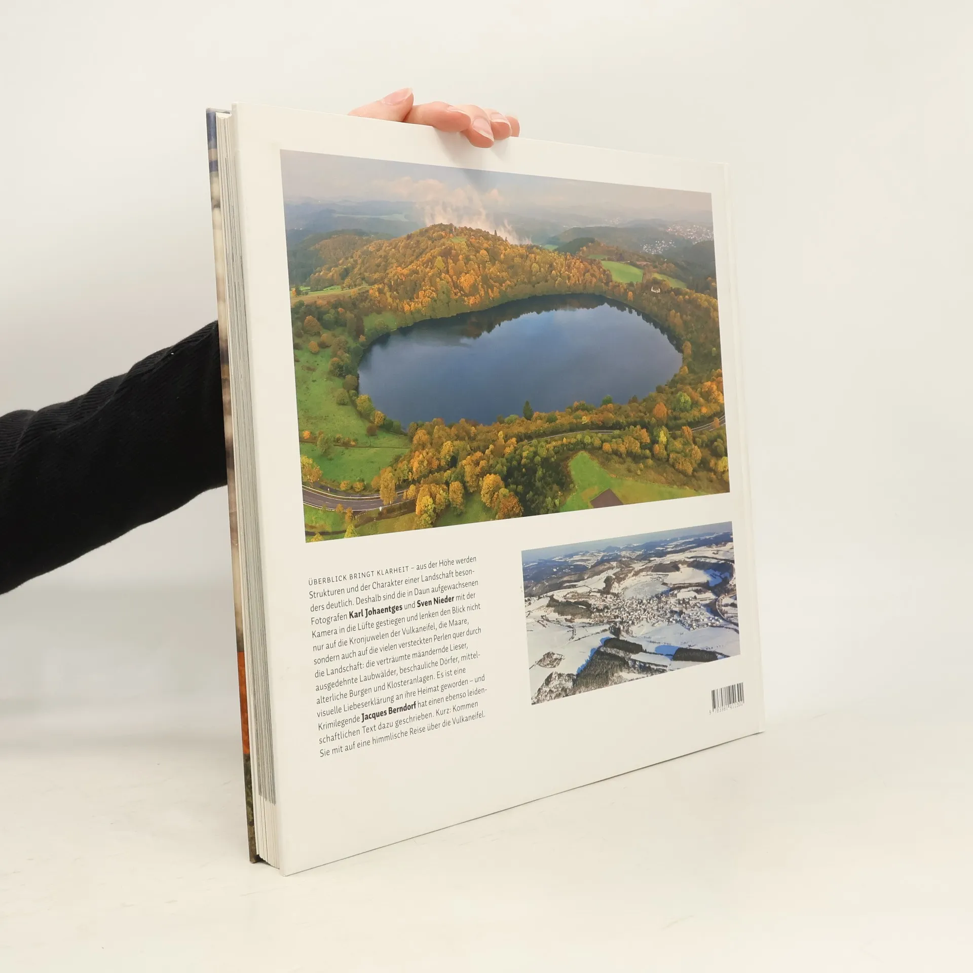 So haben sie die Vulkaneifel noch nie gesehen! Karl Johaentges, Sven Nieder und Jacques Berndorf zeichnen ein faszinierenden und einzigartiges Bild dieses besonderen Landstreifens.überblick bringt Klarheit, aus der Höhe werden Strukturen und der Charakter einer Landschaft besonders deutlich. Aus diesem Grund haben sich die weltweit arbeitenden und aus der Vulkaneifel stammenden Fotografen Karl Johaentges und Sven Nieder mit der Kamera in den Himmel über der Eifel begeben. Sie wissen, wie schön es zuhause ist und haben mit einzigartigen Fotografien eine flammende Liebeserklärung an ihre Heimat vorgelegt. über 130 Motive zeigen die Vulkaneifel aus neuen, überraschenden und zuweilen himmlischen Perspektiven. Zusammen mit einem ebenso leidenschaftlichen Text von Krimilegende Jacques Berndorf bietet dieser neue Bildband ein facettenreiches, ja plastisches Mosaik der Vulkaneifel. Die Fotografen haben das Herz der Eifel über den Zeitraum eines Jahres zu allen Jahreszeiten abgelichtet. Sie lenken den Blick nicht nur auf die Maare und andere Eifeljuwelen, sondern auch auf die vielen versteckten Perlen quer durch die Verbandsgemeinden: verträumte Mäander der Lieser, ausgedehnte Laubwälder, beschauliche Dörfer und Klosteranlagen. Ihre himmlische Reise geht aber punktuell auch über das Herz der Eifel hinaus und führt sie von Manderscheid bis zur Hohen Acht, vom Salmwald bis zur Burg Eltz.