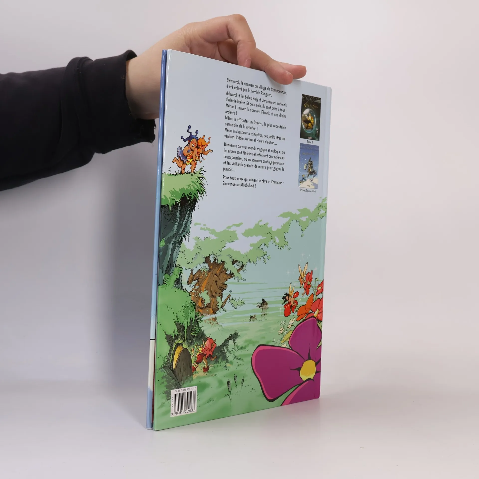 Ewiskarol, le shaman du village de Cornedebrum, à été enlevé par le terrible Ranguen. Adiwarol et les belles Kaly et Lilmarlèn ont entrepris d'aller le libérer. Et pour cela, ils sont prêts à tout Même à braver la sorcière Fènwik et ses désirs ardents ! Même à affronter un Ghorre, le plus redoutable carnassier de la création ! Même à s'associer aux Kapitos, ces petits êtres qui vénèrent l'idole Kontra et rêvent d'action... Bienvenue dans un monde magique et loufoque, où les arbres sont féminins et retiennent prisonniers les beaux guerriers, où les sorcières sont nymphomanes et les vieillards pressés de mourir pour gagner le paradis... Pour tous ceux qui aiment le rêve et l'humour Bienvenue au Miroboland !