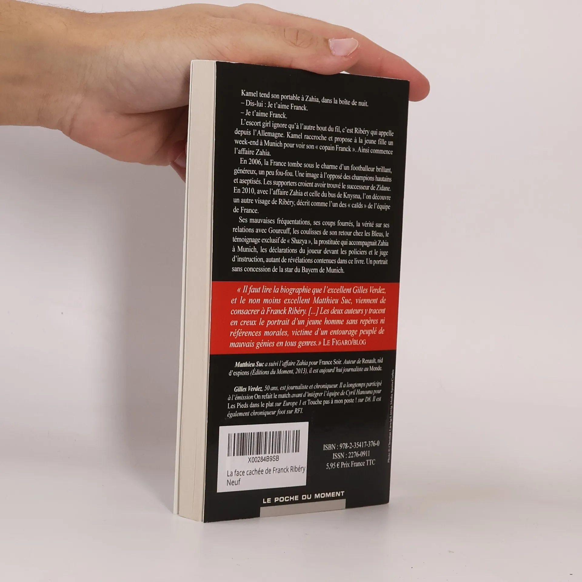 Kamel tend son portable à Zahia, dans la boîte de nuit. - Dis-lui : Je t'aime Franck. - Je t'aime Franck. L'escort girl ignore qu'à l'autre bout du fil, c'est Ribéry qui appelle depuis l'Allemagne. Kamel raccroche et propose à la jeune fille un week-end à Munich pour voir son « copain Franck ». Ainsi commence l'affaire Zahia. En 2006, la France tombe sous le charme d'un footballeur brillant, généreux, un peu fou-fou. Une image à l'opposé des champions hautains et aseptisés. Les supporters croient avoir trouvé le successeur de Zidane. En 2010, avec l'affaire Zahia et celle du bus de Knysna, l'on découvre un autre visage de Ribéry, décrit comme l'un des « caïds » de l'équipe de France. Ses mauvaises fréquentations, ses coups fourrés, la vérité sur ses relations avec Gourcuff, les coulisses de son retour chez les Bleus, le témoignage exclusif de « Shazya », la prostituée qui accompagnait Zahia à Munich, les déclarations du joueur devant les policiers et le juge d'instruction, autant de révélations contenues dans ce livre. Un portrait sans concession de la star du foot.