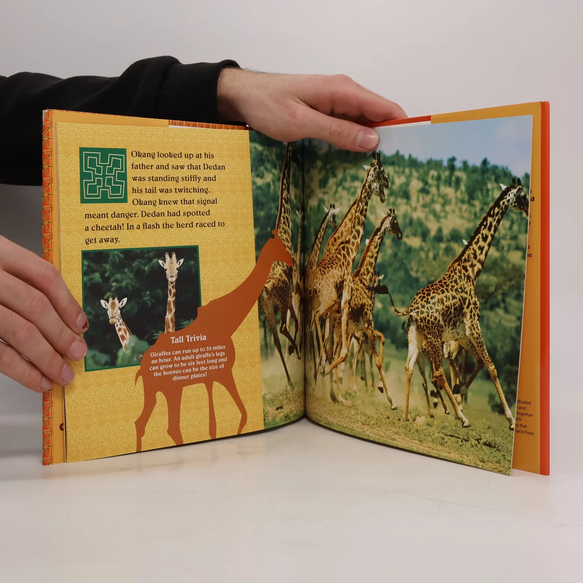Dedan has a good life on the African savanna. His days pass pleasantly as he crunches and munches tree leaves neck and neck with other giraffes. On this day, Dedan helps his herd find safety. Hooray for Dedan! He saves the day!