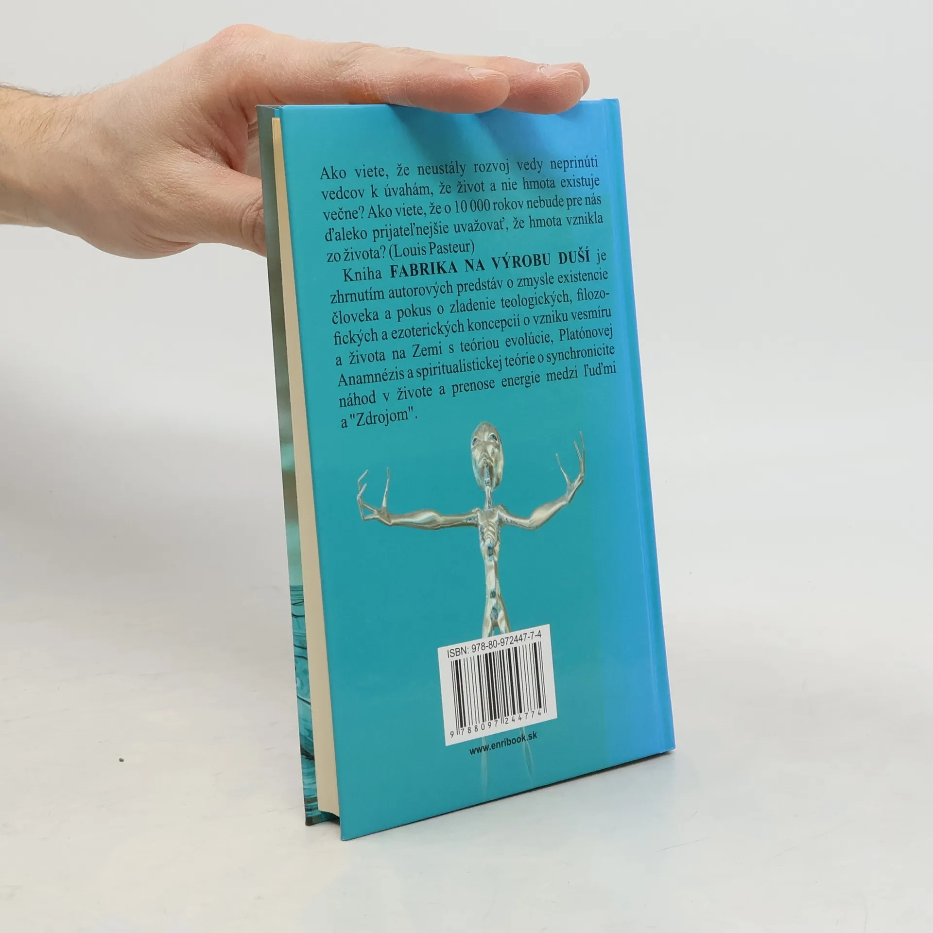 Keď pre homo sapiens sapiens existuje neviditeľná hmota (vzduch), prečo by súčasne nemohol existovať aj homo energetikus (neviditeľný tvor)? Autor formuloval vyššie uvedenú otázku s pocitom prílišnej odvahy, ba až opovážlivosti. Následne sa však stretol s výrokom: „Ako viete, že neustály rozvoj vedy neprinúti vedcov k úvahám, že život a nie hmota existuje večne? Ako viete, že o 10 000 rokov nebude pre nás ďaleko prijateľnejšie uvažovať, že hmota vznikla zo života?“ od Louisa Pasteura, uvedeným v knihe Život pochádza zo života. Kniha FABRIKA NA VÝROBU DUŠÍ je zhrnutím autorových predstáv o zmysle existencie človeka a pokus o zladenie teologických, filozofických a ezoterických koncepcií o vzniku vesmíru a života na Zemi s teóriou evolúcie, Platónovej Anamnézis a spiritualistickej teórie o synchronicite náhod v živote a prenose energie medzi ľuďmi a "Zdrojom".