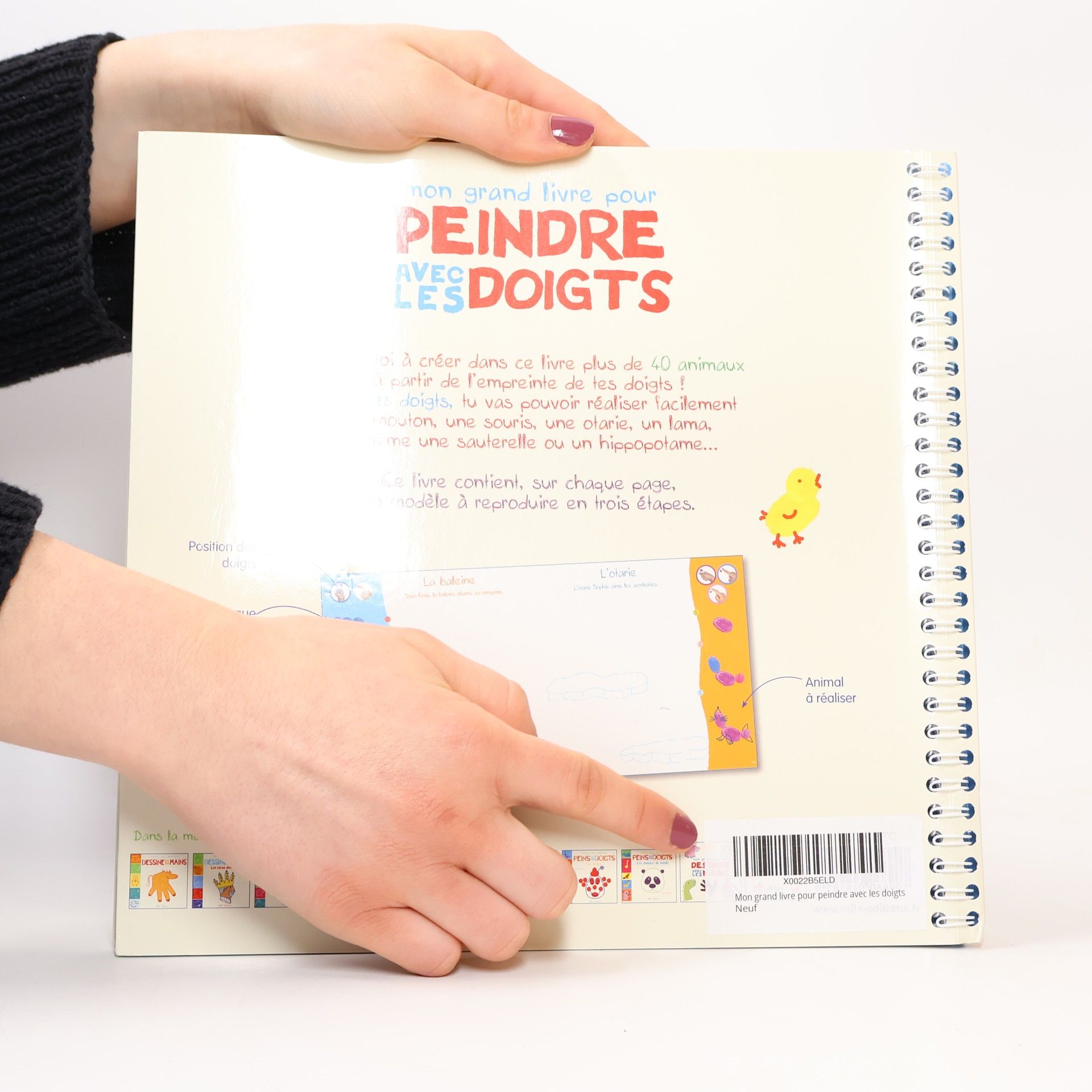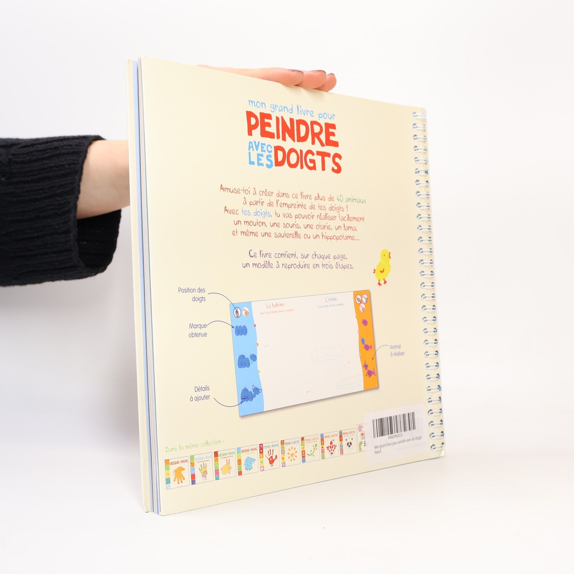Amuse-toi peindre, dans ce grand livre, plus de 40 animaux partir de tes empreintes de doigts ! Avec seulement de la peinture, tu vas pouvoir raliser en quelques tapes un lzard, un lion ou un lphant... Ce livre contient, pour chaque modle, des explications claires suivre, tape par tape, et une page avec un dcor pour crer son animal.