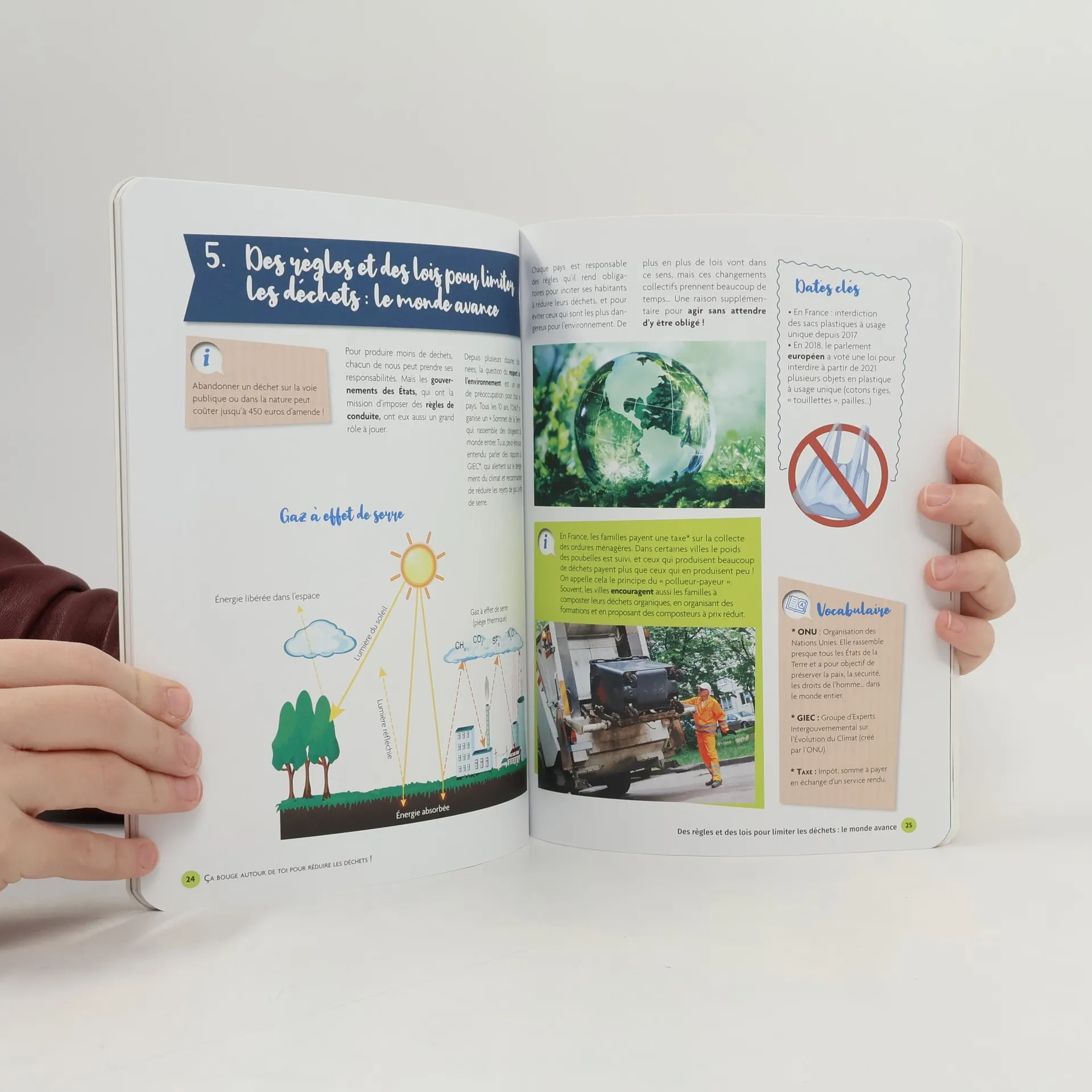 Comment en sommes-nous arrivés à produire trop de déchets ? Quelles sont les conséquences sur l'homme, la nature, les animaux ? Comment peut-on changer tout ça, dès aujourd'hui ? Tu veux comprendre le problème des déchets pour mieux prendre soin de la vie sur Terre ? Pars à la découverte des déchets utiles et de ceux qu'il faudrait éviter, apprends à changer ta façon de consommer, fais connaissance avec les projets positifs qui permettent d'avancer vers moins de pollution... Et surtout : découvre tout ce que tu peux déjà changer dans ton quotidien pour dire stop aux déchets ! Avec des zooms sur les sujets clés, du vocabulaire pour mieux comprendre l'actualité, des repères chiffrés et des fiches pratiques.