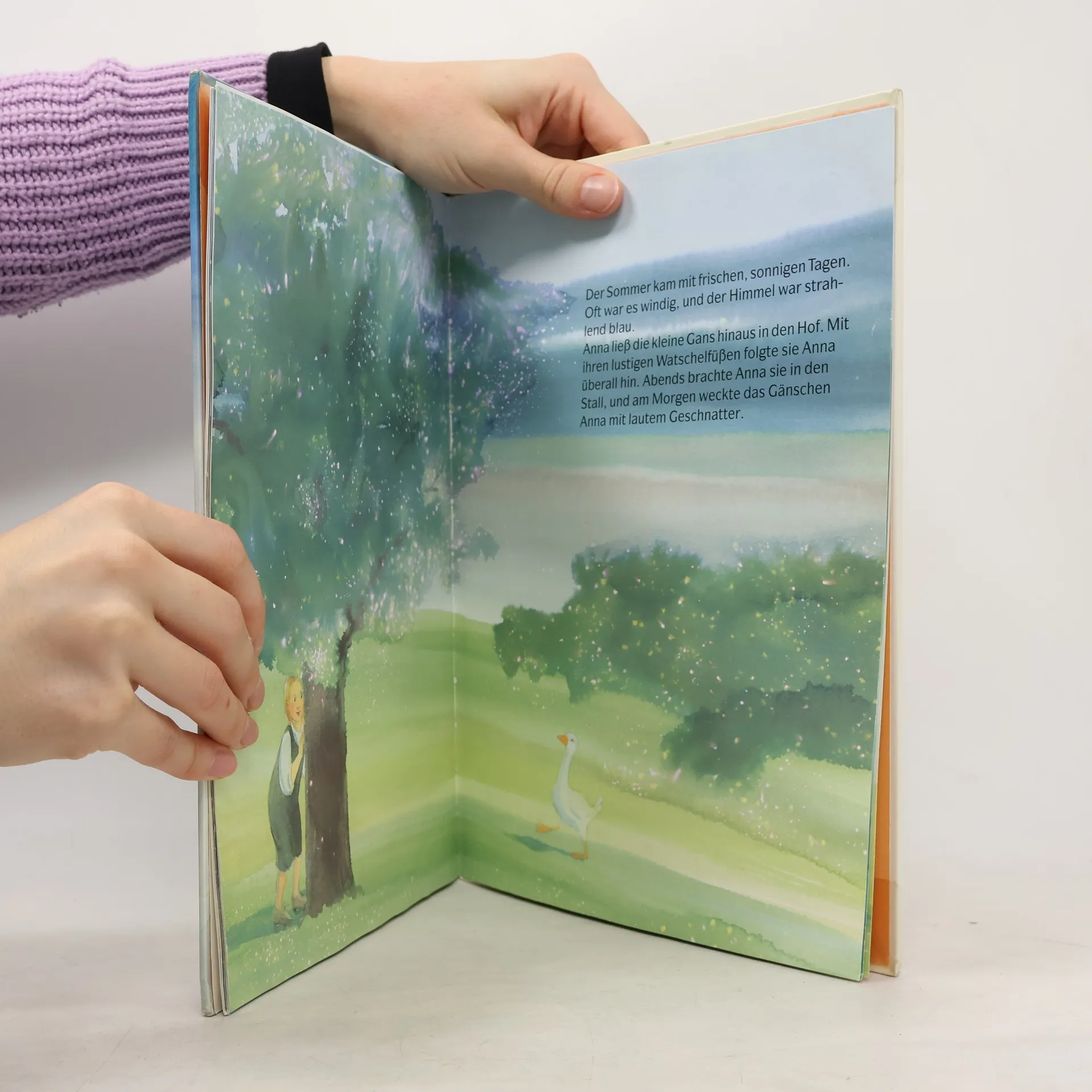 Als Großvater eines Tages eine verletzte Gans mit nach Hause bringt, nimmt sich Anna ihrer an, baut ihr ein Nest und pflegt sie. Doch leider stirbt das Tier, trotz aller Bemühungen, und Anna ist sehr traurig. Da entdeckt sie im Nest ein Gänseei, aus dem doch tatsächlich einige Zeit später ein Gänseküken schlüpft. Eine hübsche Geschichte vom Kreislauf der Natur. (Ab 5 Jahren.)