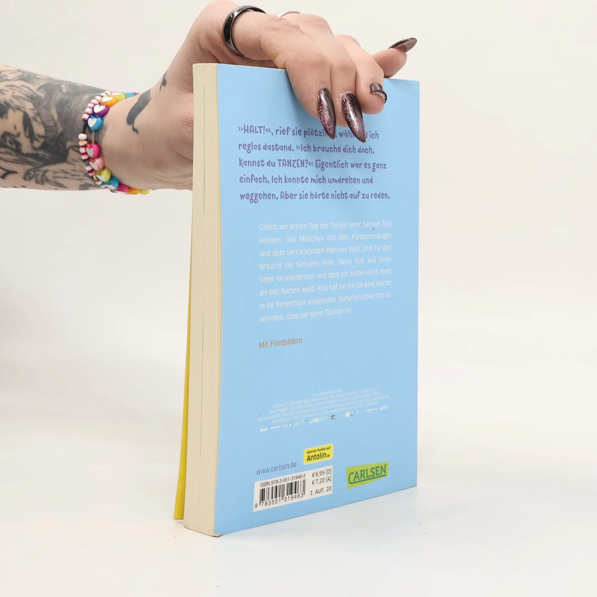 Jetzt als Kinofilm: Das wunderbare Kinderbuch von Anna Woltz! Der vielfach ausgezeichnete Familienfilm kommt im September 2020 in die Kinos. Gleich am ersten Tag der Ferien lernt Samuel Tess kennen. Das Mädchen mit den Pünktchenaugen und dem verrücktesten Plan der Welt. Und für den braucht sie Samuels Hilfe. Denn Tess will ihren Vater kennenlernen, von dem sie bisher nicht mehr als den Namen weiß. Also hat sie ihn für eine Woche in ihr Ferienhaus eingeladen. Natürlich ohne ihm zu verraten, dass sie seine Tochter ist. Der Plan geht gründlich schief und am Ende fliegt alles auf, aber eines ist klar: Tess möchte ihren Vater haben und ihr Vater möchte Tess haben. Eine warmherzige Verfilmung dieses ganz besonderen Kinderbuches - ein Vergnügen für die ganze Familie! Mit vielen farbigen Filmbildern im Buch!