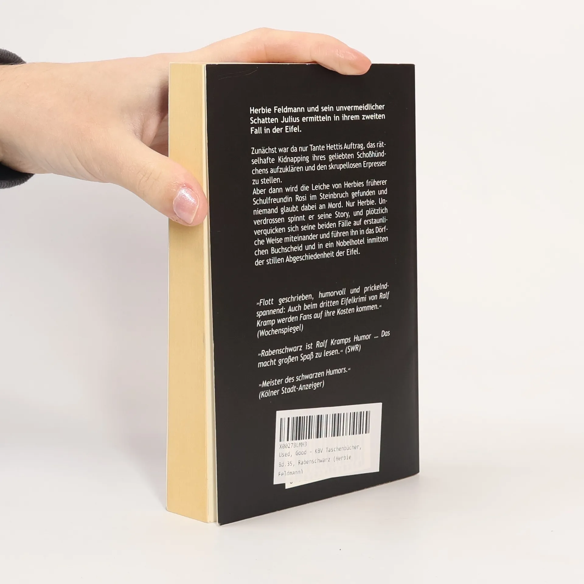 Zunachst ist da nur Tante Hetties Auftrag, das ratselhafte Kidnapping ihres geliebten SchoSShundchens aufzuklaren und den skrupellosen Erpresser zu stellen. Aber dann wird die Leiche von Herbies fruherer Schulfreundin Rosi im Steinbruch gefunden und niemand glaubt dabei an Mord. NUr Herbie. UNverdrossen machen er und sein unvermeidlicher Schatten Julius sich auf die Suche nach der Wahrheit. Plotzlich verquicken sich die beiden Falle auf erstaunliche Weise miteinander und fuhren ihn in das Dorfchen Buchscheid und in ein Nobelhotel inmitten der stillen Abgeschiedenheit der Eifel.