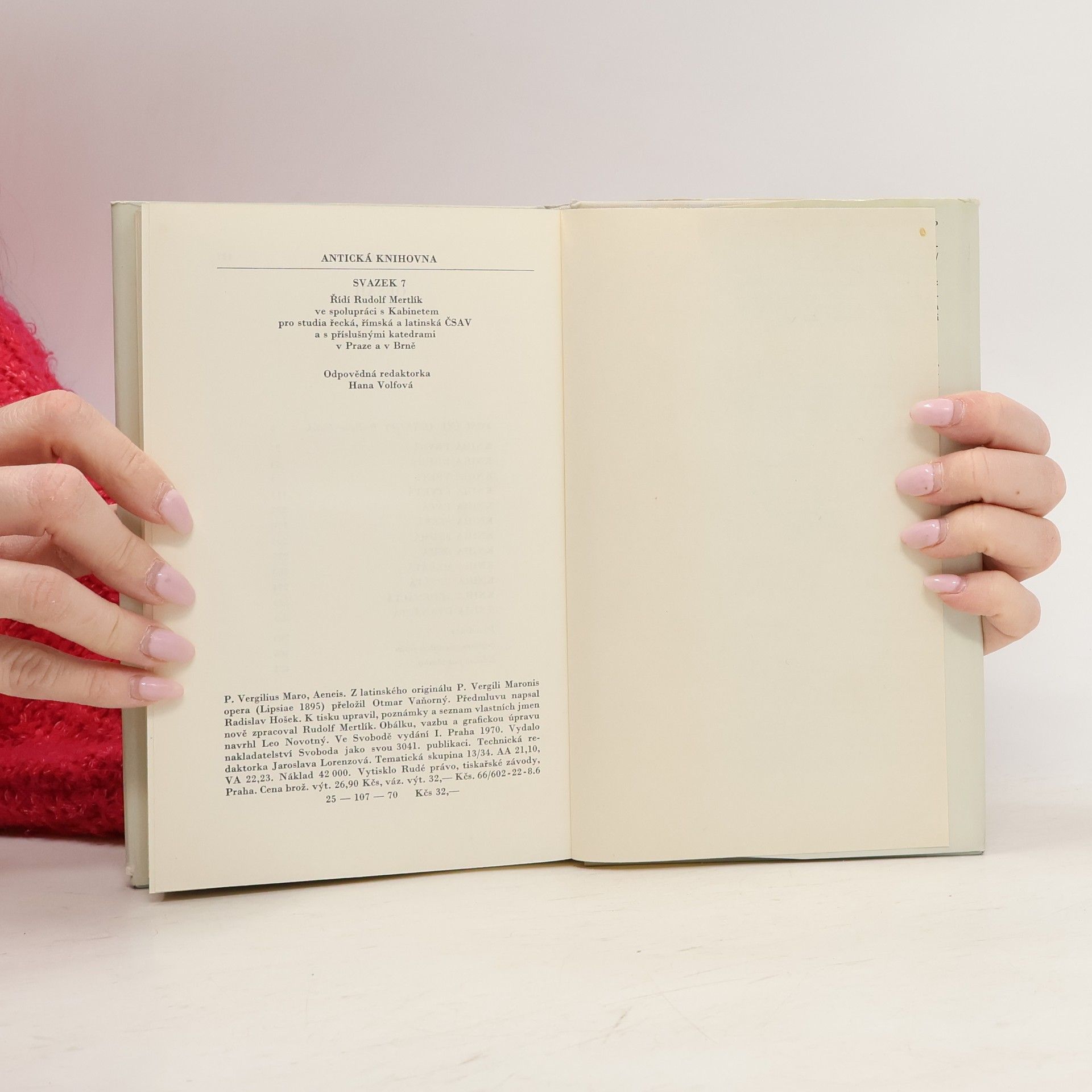 Nový překlad životního díla Publia Vergilia Marona (70– 19. př. n. l.), hrdinského eposu, který tvoří jeden z vrcholů římské literatury. Slavný básník v postavě bájného Aenea ztělesnil římský ideál osobní dokonalosti a epos líčící jeho dramatické osudy představuje základní mýtus o vzniku římského národa a říše – v proslulé podsvětní scéně je prorokována římská budoucnost a velikost až do panování císaře Augusta. Příběh navazuje na děj Homérovy Iliady: po dobytí Tróje vynesl Aeneas z hořícího města na zádech svého otce Anchísa a zachránil i svého syna Askania. Jeho posláním je založit jinde novou Tróju. Po dramatickém putování Středozemím, jehož nejznámější epizodou je tragicky ukončený milostný vztah s kartáginskou královnou Didonou, dorazí do Itálie, podstoupí těžký boj s vládcem kmene Rutulů Turnem a sňatkem s Lavinií, dcerou krále Latinů, získá vládu nad Latiem, územím, na němž později vznikne Řím. Aeneis byla bohatým zdrojem inspirace pro nespočet výtvarných, hudebních i literárních děl od antiky až téměř do současnosti. Přeložil Rudolf Mertlík na základě překladu Otmara Vaňorného; doslov napsal Martin C. Putna.