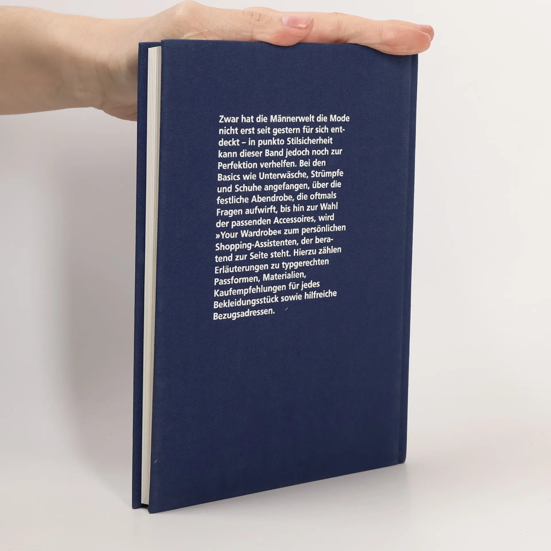 Zwar hat die Männerwelt die Mode nicht erst seit gestern für sich entdeckt – in punkto Stilsicherheit kann dieser Band jedoch noch zur Perfektion verhelfen. Bei den Basics wie Unterwäsche, Strümpfe und Schuhe angefangen, über die festliche Abendrobe, die oftmals Fragen aufwirft, bis hin zur Wahl der passenden Accessoires, wird 'Your Wardrobe' zum persönlichen Shopping-Assistenten, der beratend zur Seite steht. Hierzu zählen Erläuterungen zu typgerechten Passformen, Materialien, Kaufempfehlungen für jedes Bekleidungsstück sowie hilfreiche Bezugsadressen.