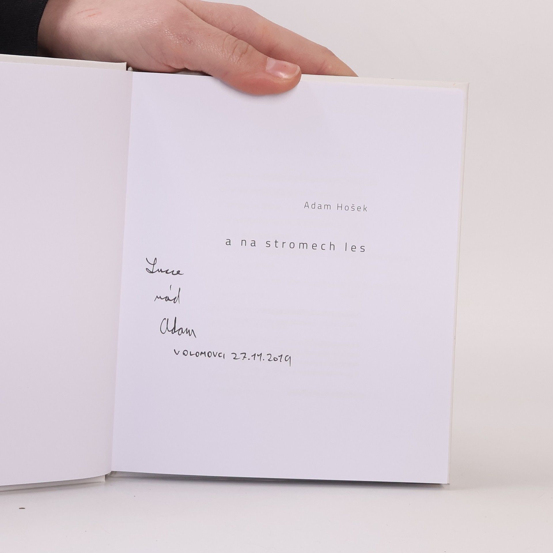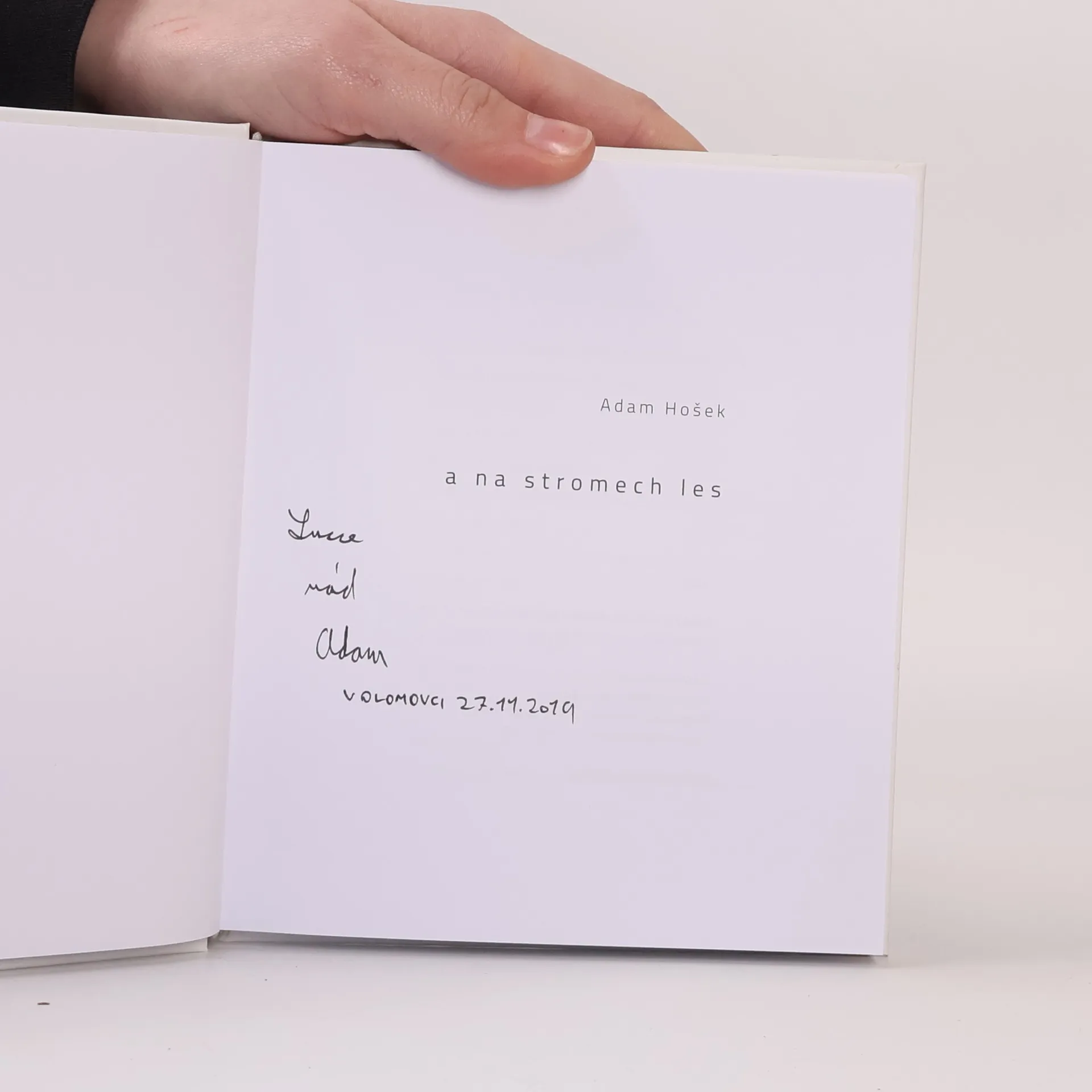 Debutová básnická sbírka Adama Hoška A na stromech les vznikla na základě autorova opakovaného úspěchu v Literární soutěži pro studenty UP. Hošek své básně publikoval v časopisech Host, Tvar či Herberk, je finalistou Literární soutěže Františka Halase pro rok 2019. Sbírka obsahuje padesát kratších básní a jeden rozsáhlejší text. Spojuje je především různá míra setkávání banality s mýtem, něhy s děsem, intimní melancholie s cynickým úšklebkem a obecné tíhnutí ke zkratce a minimalismu. Sbírku ilustrovala absolventka výtvarné tvorby na PdF UP Jitka Králová.