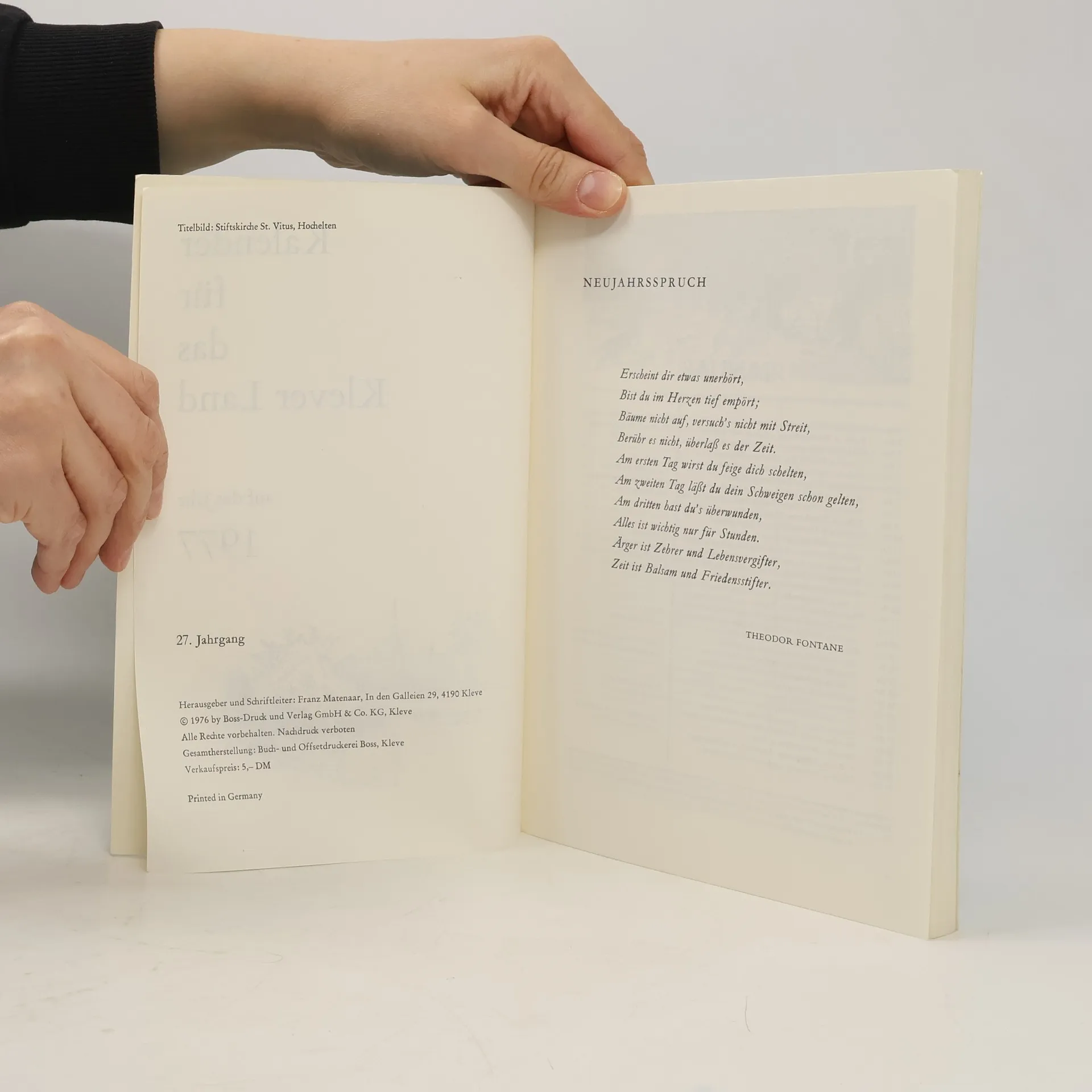 Kalender für das Klever Land auf das Jahr 1977