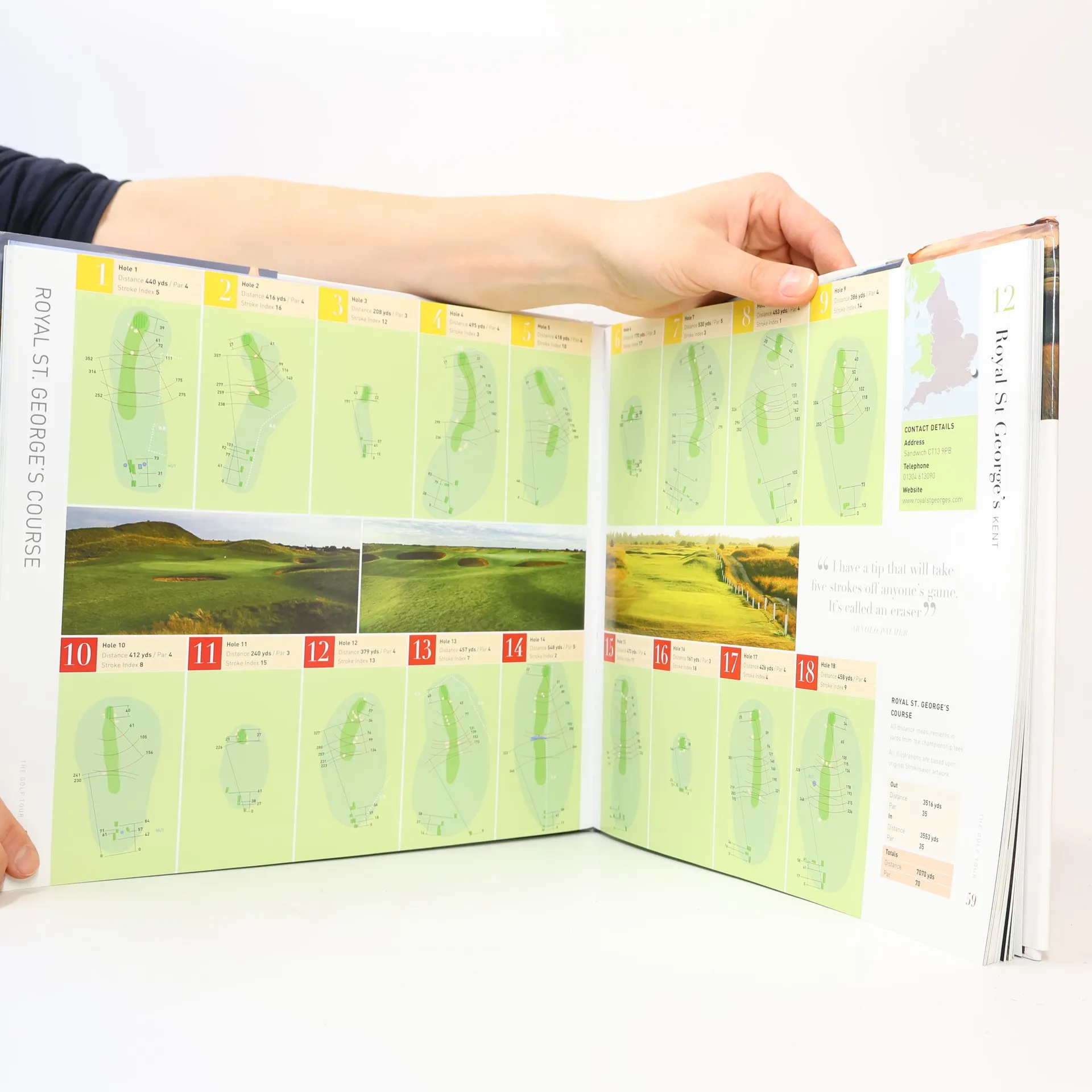 Golf has long fascinated people around the world from the intriguing early history of the game to the latest televised nail-biting climax of a major championship. The Golf Tour takes you on a journey through gentle rolling countryside in southern England acorss the length & breadth of the country with its ever0changing landscape, to the wild & rugged coast & mountains of Wales, Scotland & Ireland, seeking out exceptional courses each with their own special challenge, an individuality that continues to make the game as addictive as it is. More than 250 stunning photographs of the top courses, course key dates, detailed illustrations of each hole, hole by hole scorecard information, golf club contact information.
