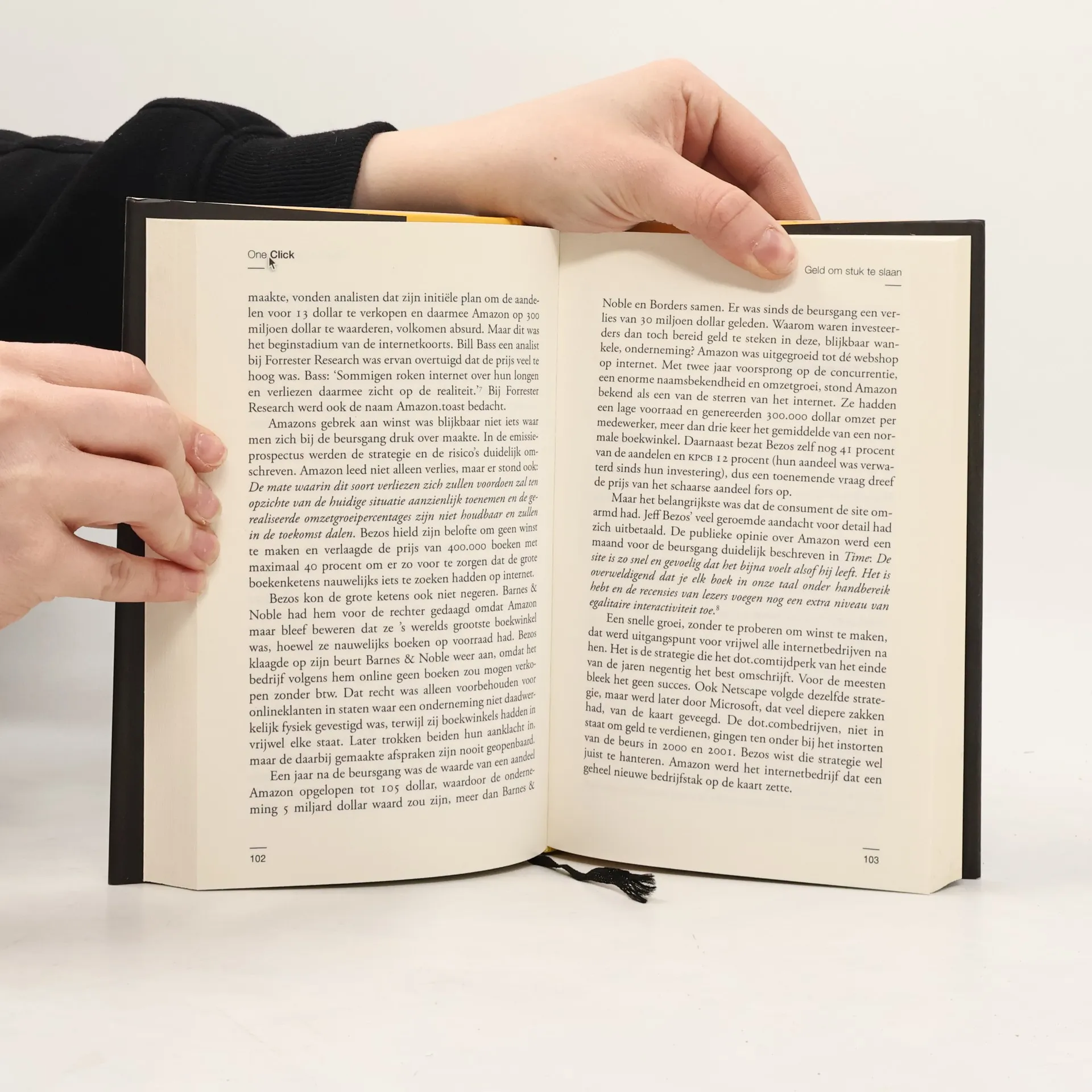 Waarom is Amazon zo succesvol? Hoe kan een computernerd getransformeerd zijn in een wereldveranderende ondernemer? Wat doet Amazon anders dan alle anderen? Lees in One click het gehele verhaal over het ontstaan, de groei en de plannen van Amazon. Waarom is Amazon zo succesvol? Veel ervan komt door Jeff Bezos, de CEO en oprichter, wiens unieke combinatie van karaktereigenschappen en bedrijfsstrategieën Amazon naar de top van de online retailwereld heeft gedreven. Amazons businessmodel is bedrieglijk eenvoudig: maak online winkelen zo eenvoudig en handig dat klanten niet twee keer zullen nadenken over hun aanschaf. Het kan bijna worden samengevat met de knop die op elke pagina staat: ´Koop nu met één klik.´ Richard Brandt schets in One Click Bezos´ transformatie van computernerd tot wereldveranderende ondernemer. Zijn succes kan worden toegeschreven aan zijn vooruitziende blikken en meedogenloze zakelijk inzicht. Door middel van interviews met Amazon-medewerkers, concurrenten en observanten, heeft Brandt ontcijferd hoe Bezos beslissingen neemt. Het verhaal van Amazons voortdurende evolutie is een case study in hoe je een gehele Industrie opnieuw uitvindt, en een die iedereen in het hedendaagse bedrijfsleven negeert, met alle gevolgen van dien.