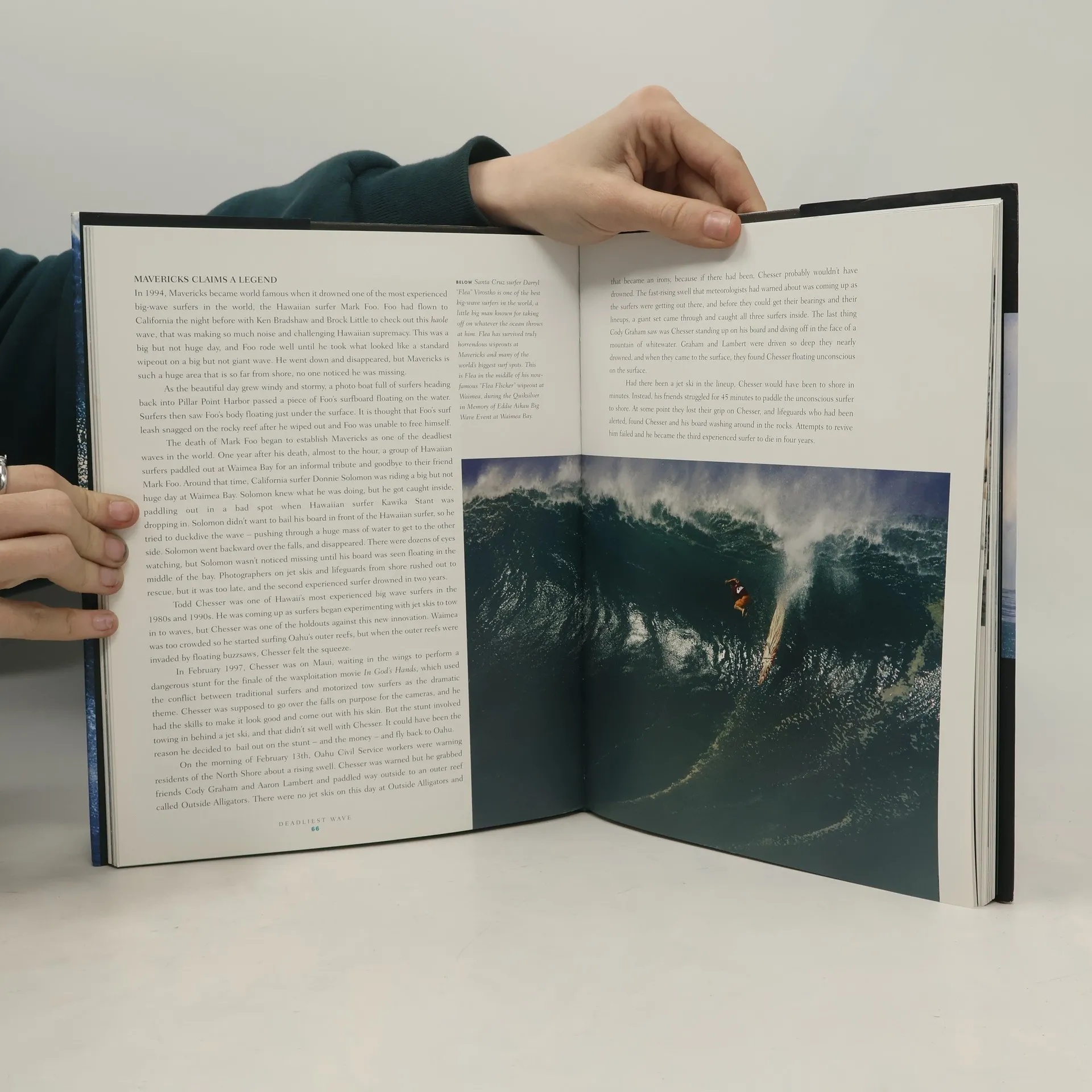 magine paddling along, just ahead of a wave that has risen to a monstrous 70 ft - a thousand tons of moving liquid arching over your head whilst you accelerate up to 55 mph, then fly through the arc of rushing water in a race to pull clear before it collapses upon you. 'Extreme surf' is a tribute to the adrenalin rush of catching a big wave.