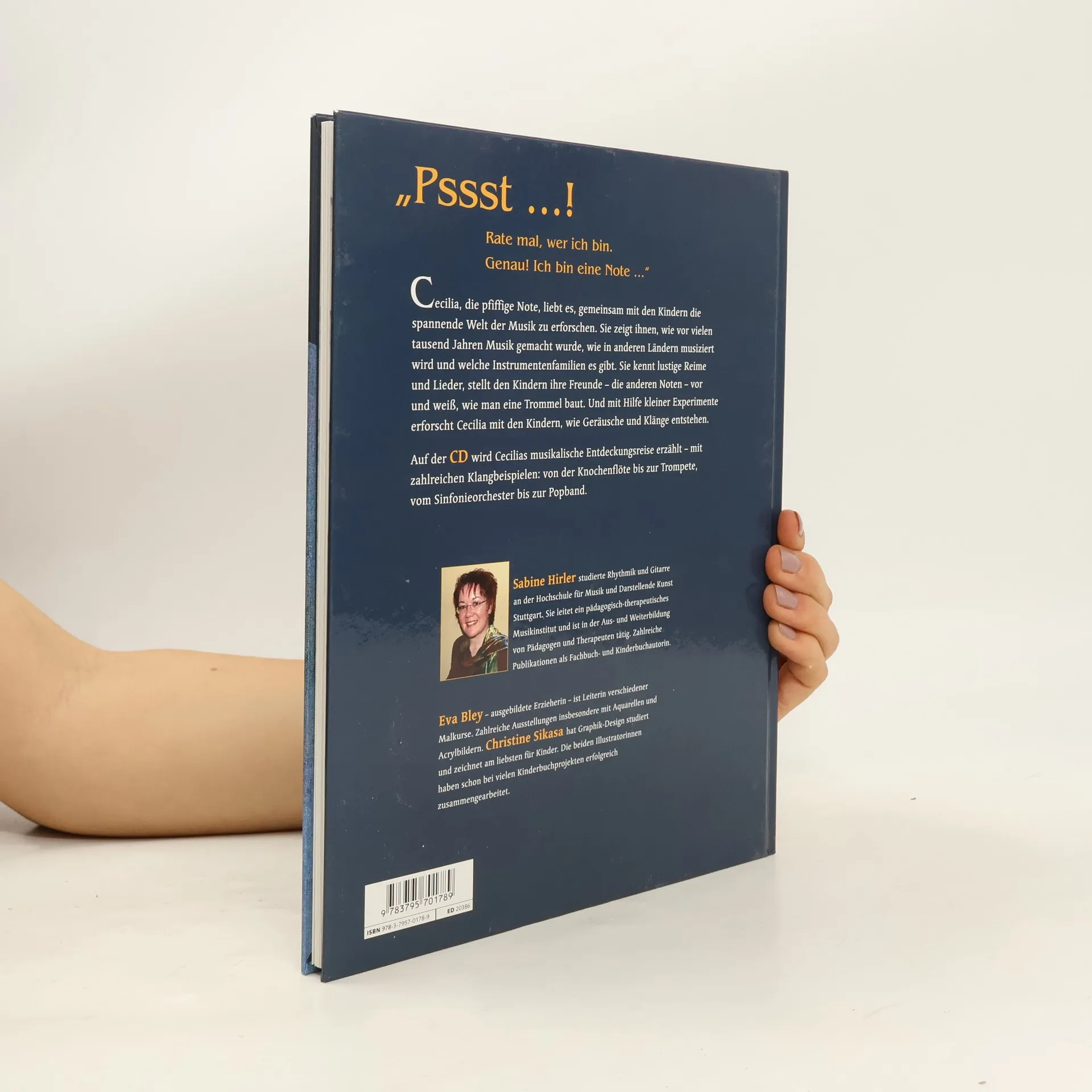 'Pssst …! Hello, can you see me? Guess who I am! Exactly! I'm a musical note …'Cecilia, the smart little note, loves to explore the exciting world of music together with children. She shows them how music was made thousands of years ago, how music is made in other countries, and which instrument families exist. She knows funny rhymes and songs, introduces her friends, the other notes, to the children and knows how to build a drum. And by means of little experiments, Cecilia examines with the children how to create noises and sounds. Cecilia's journey of discovery is narrated on the accompanying CD – with numerous sound examples: from bone scraper to electric guitar, from symphony orchestra to rock band. For children aged 4+ who want to get to know many things about the colourful world of music in a playful way. Sabine Hirler studied rhythmics and guitar at the Stuttgart Academy of Music and Performing Arts. She is director of an educational-therapeutic music institute and trains teachers and therapists. Numerous publications of specialist and children's books.