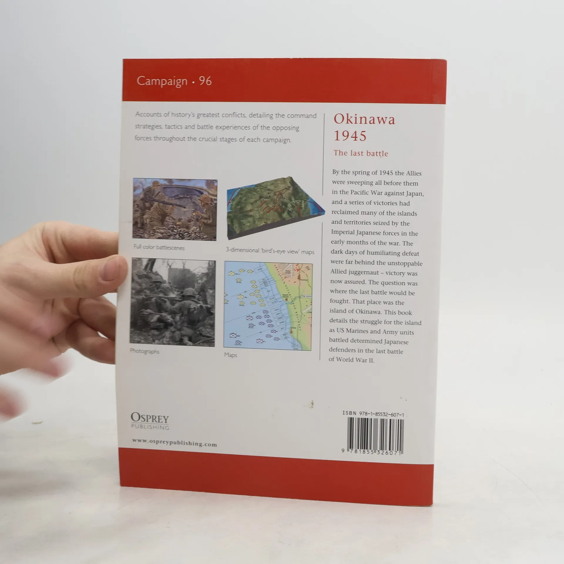 By the spring of 1945 the Allies were sweeping all before them in the Pacific War against Japan, and a series of victories had reclaimed many of the islands and territories seized by the Imperial Japanese forces in the early months of the war. The dark days of humiliating defeat were far behind the unstoppable Allied juggernaut - victory was now assured. The question was where the last battle would be fought. That place was the island of Okinawa. This book details the struggle for the island as US Marines and Army units battled determined Japanese defenders in the last battle of World War II (1939-1945).