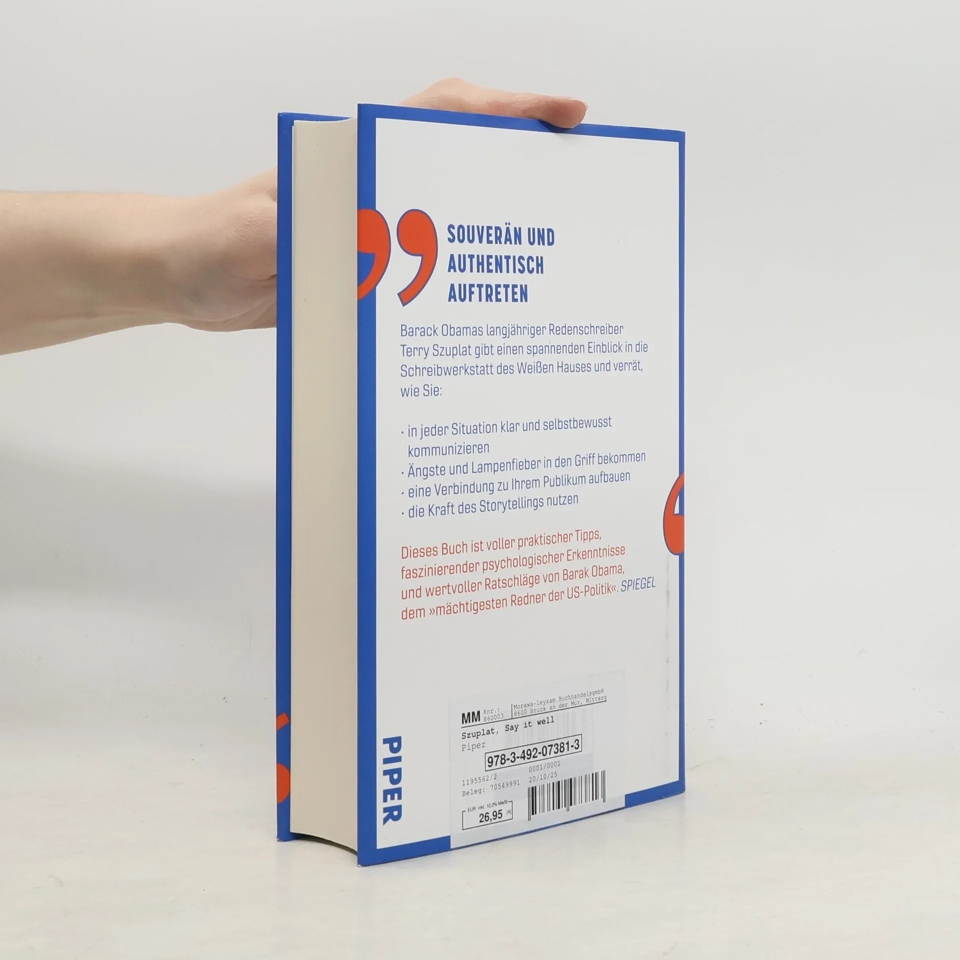 <strong>Authentisch und souverän auftreten</strong> Acht Jahre arbeitete Terry Szuplat im Weißen Haus für Barack Obama, der als einer der besten Redner unserer Zeit gilt. Gemeinsam erschufen sie Reden, die Geschichte schrieben. Die Zutaten, Formeln und Geheimnisse eines überzeugenden Auftritts verrät Terry Szuplat in diesem Buch. Er gibt Einblicke in die Schreibwerkstatt Obamas und in viele persönliche Gespräche mit diesem, liefert praktische Tipps und faszinierende psychologische Forschungsergebnisse. Spannend und einfühlsam erklärt er, wie wir Ängste überwinden und lernen können, souverän und erfolgreich vor anderen zu sprechen.