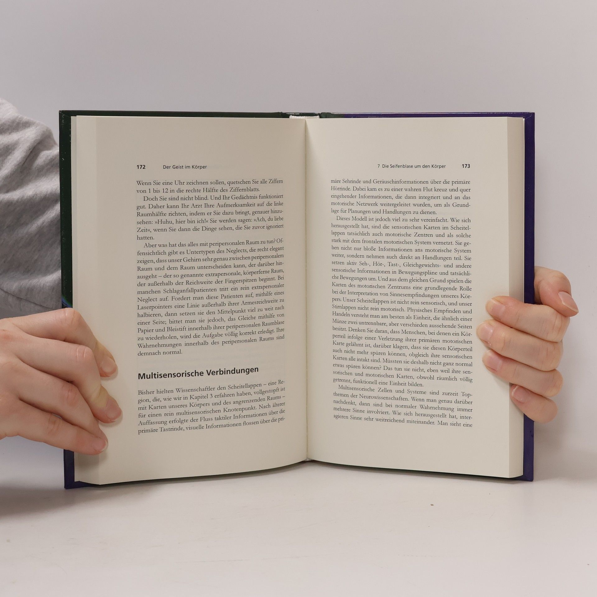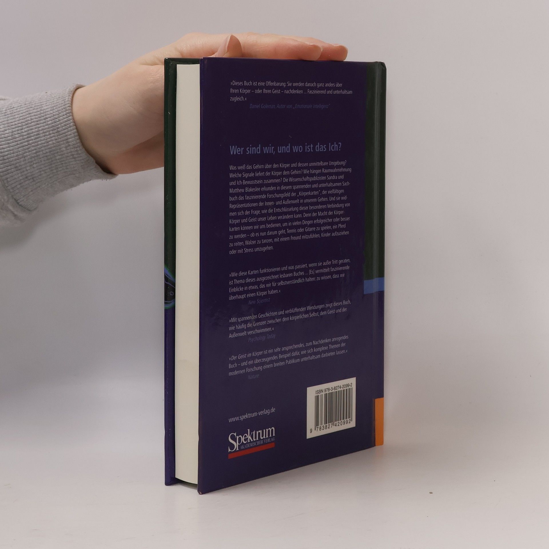 In diesem faszinierenden Buch erkunden die Wissenschaftspublizisten Sandra und Matthew Blakeslee das Forschungsfeld der „Körperkarten“ – detaillierte Repräsentationen der Innen- und Außenwelt im Gehirn. Sie untersuchen, wie die Verbindung von Körper und Geist unser Leben beeinflusst. Warum empfinden viele Menschen, die abgenommen haben, sich weiterhin dick? Was macht Computerspiele süchtig? Wie kann man sich in einem Sport verbessern, nur durch mentale Übungen? Die Antworten auf solche Fragen liegen in unseren Körperkarten. Ähnlich wie Straßenkarten repräsentieren sie alle Aspekte unseres körperlichen Selbst – sowohl innerlich als auch äußerlich. Diese Karten formen unser physisches und mentales Bewusstsein sowie unser Identitätsgefühl in einer größeren sozialen Welt. Zudem sind unsere Körperkarten bemerkenswert elastisch. Unser Selbst reicht über den physischen Körper hinaus und erstreckt sich in den umgebenden Raum, der sich verändert, wenn wir Kleidung an- oder ausziehen, Fahrrad fahren oder Werkzeuge benutzen. Beim Autofahren erweitert sich dieser „peripersonale Raum“ bis zur Fahrzeuggrenze. In Computerspielen spüren wir die Aktionen unserer Spielfigur, während Horrorfilme unsere Körperkarten aktivieren und körperliche Reaktionen hervorrufen. Wenn Körperkarten aus dem Gleichgewicht geraten, können Menschen außerkörperliche Erfahrungen machen oder Auren um andere wahrnehmen.