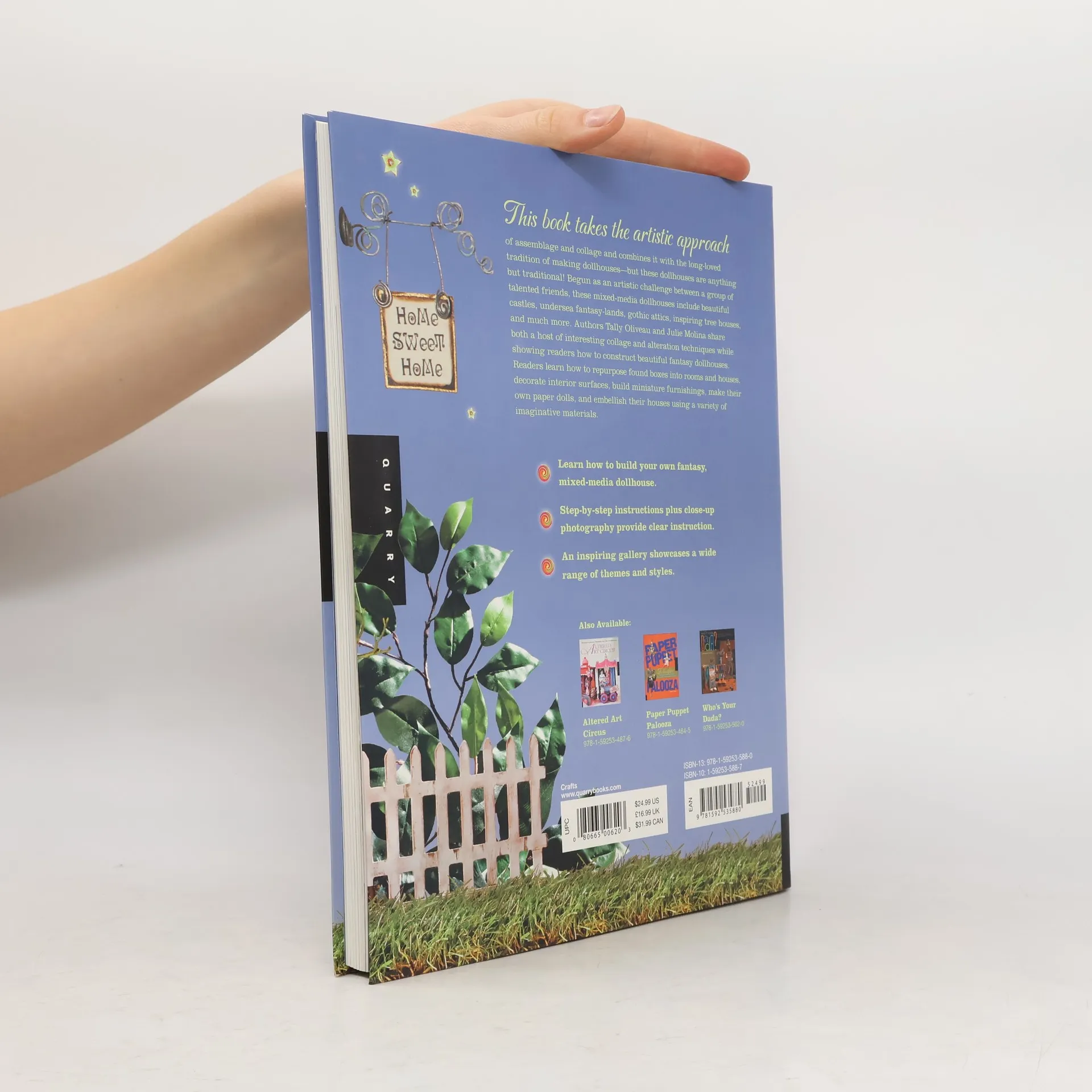 This book takes the artistic approach of assemblage and collage, and combines it with the long-loved tradition of making doll houses--but these doll houses are anything but traditional! Begun as an artistic challenge between a group of talented friends, these mixed-media doll houses include beautiful castles, undersea fantasy-lands, gothic attics, inspiring tree houses and much more. Authors Tally Oliveau and Julie Molina share a host of interesting alteration techniques while showing readers how to construct beautiful, fantasy doll houses. Readers learn to how to construct or repurpose found boxes into rooms and houses, how to decorate interior surfaces, how to build miniature furnishings, how to make their own paper dolls, and how to embellish their houses using a variety of imaginative materials.