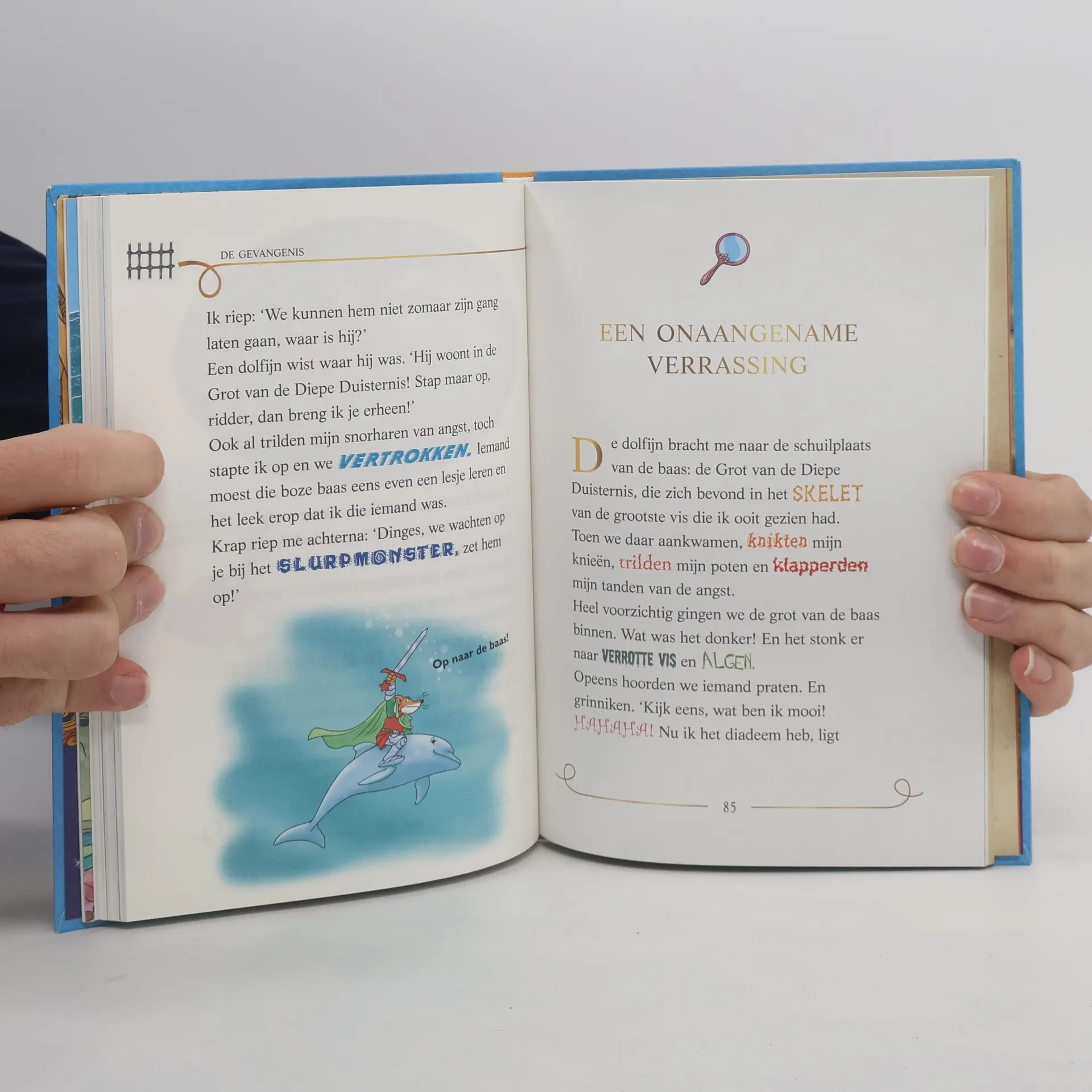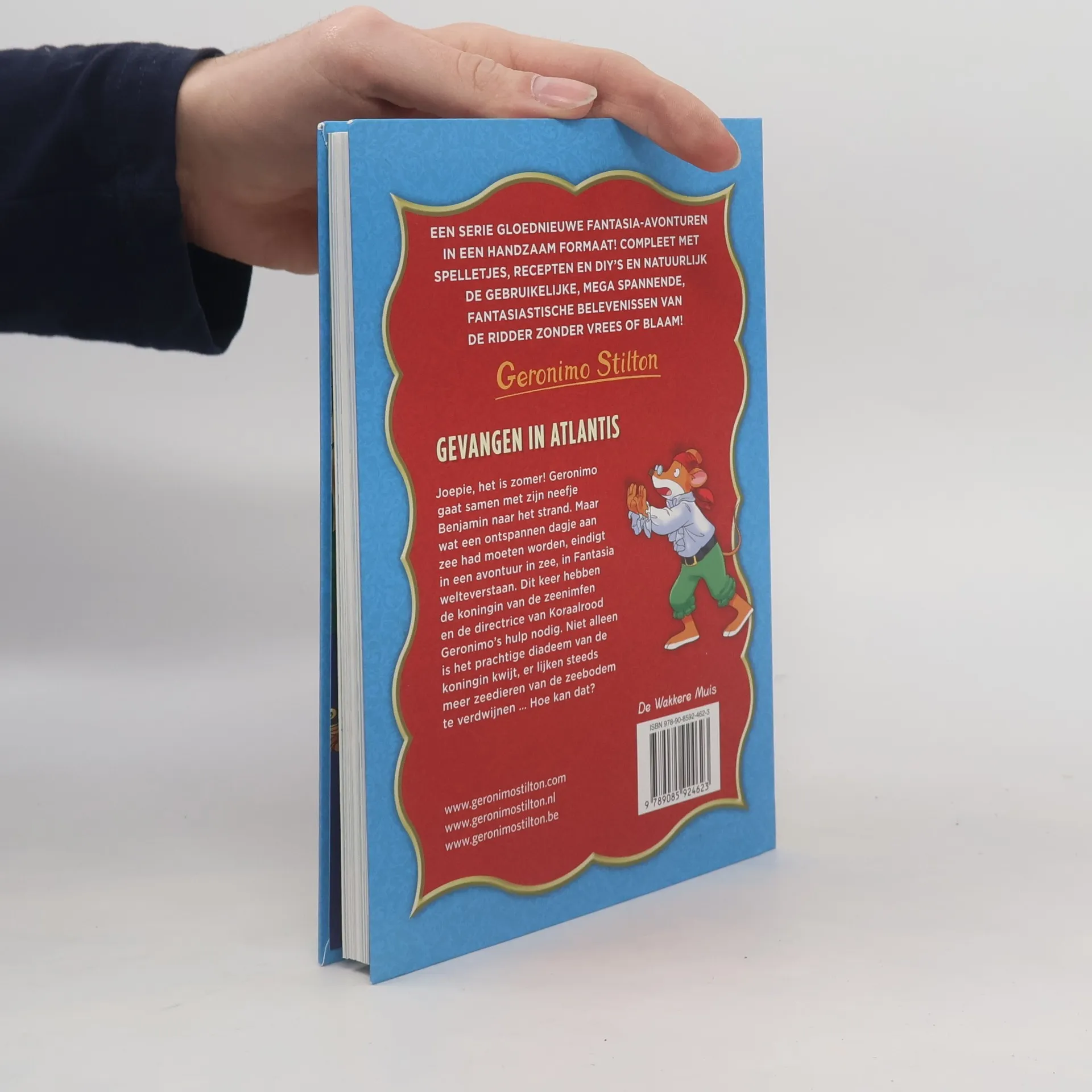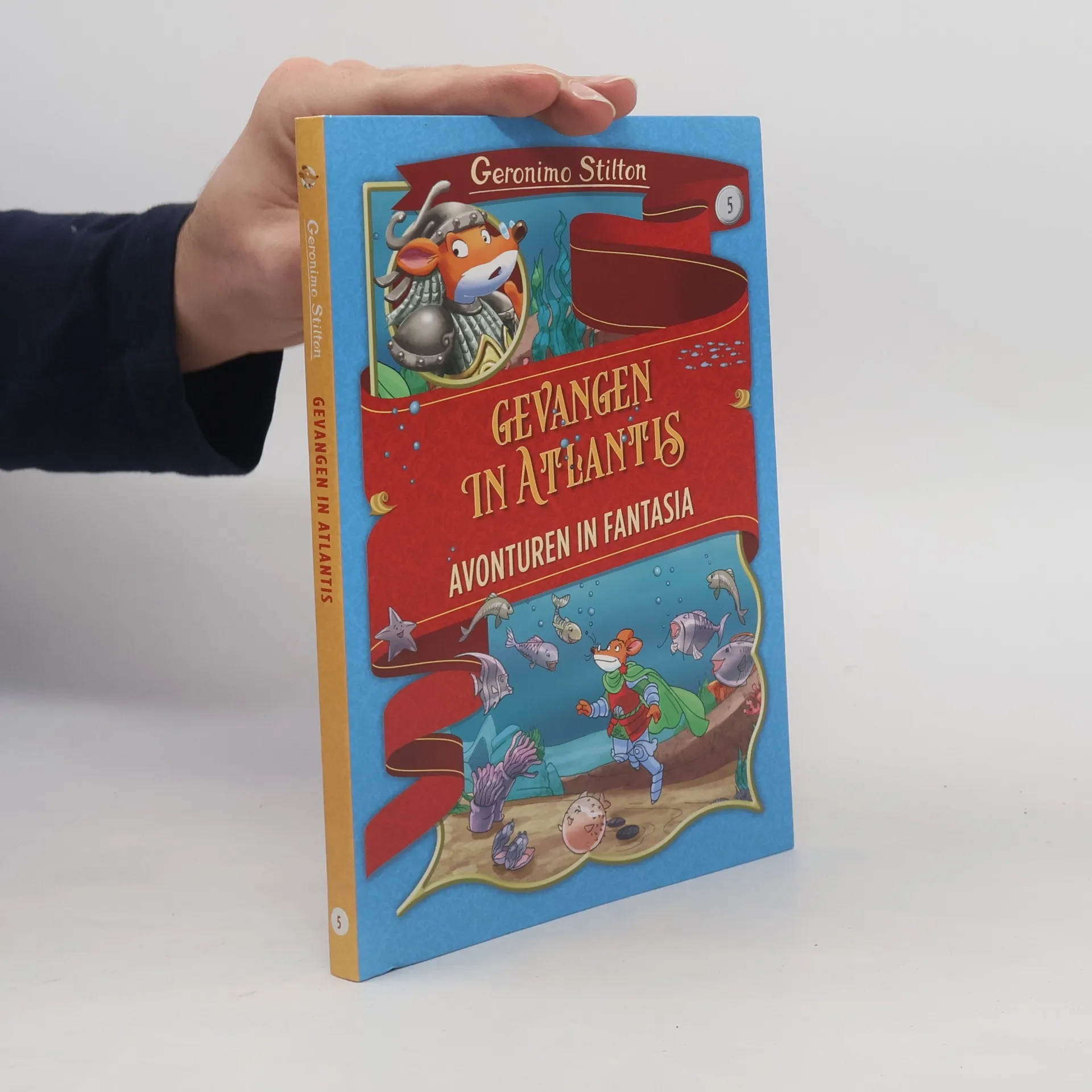 Als Geronimo met zijn neefje Benjamin een dagje naar het strand gaat, valt hij in zijn strandstoel in slaap en wordt hij wakker ... in het water! In het onderwaterrijk Aquarius in Fantasia welteverstaan. Daar wordt hij op pad gestuurd om ontvoerde bewoners van dit rijk terug te vinden. Via de Obscure Onderwereld belandt hij met zijn vrienden uit Fantasia in de Grot van de Diepe Duisternis, waar er een enorme zeedraak op ze wacht. Brrr... snorharentriller!Gevangen in Atlantis is het vijfde deel van de superspannende mini-serie over Fantasia. Naast de avonturen van Geronimo Stilton, bevat het boek ook een aantal pagina's vol spelletjes, recepten en DIY's.De verschillende delen uit deze serie zijn los te lezen.