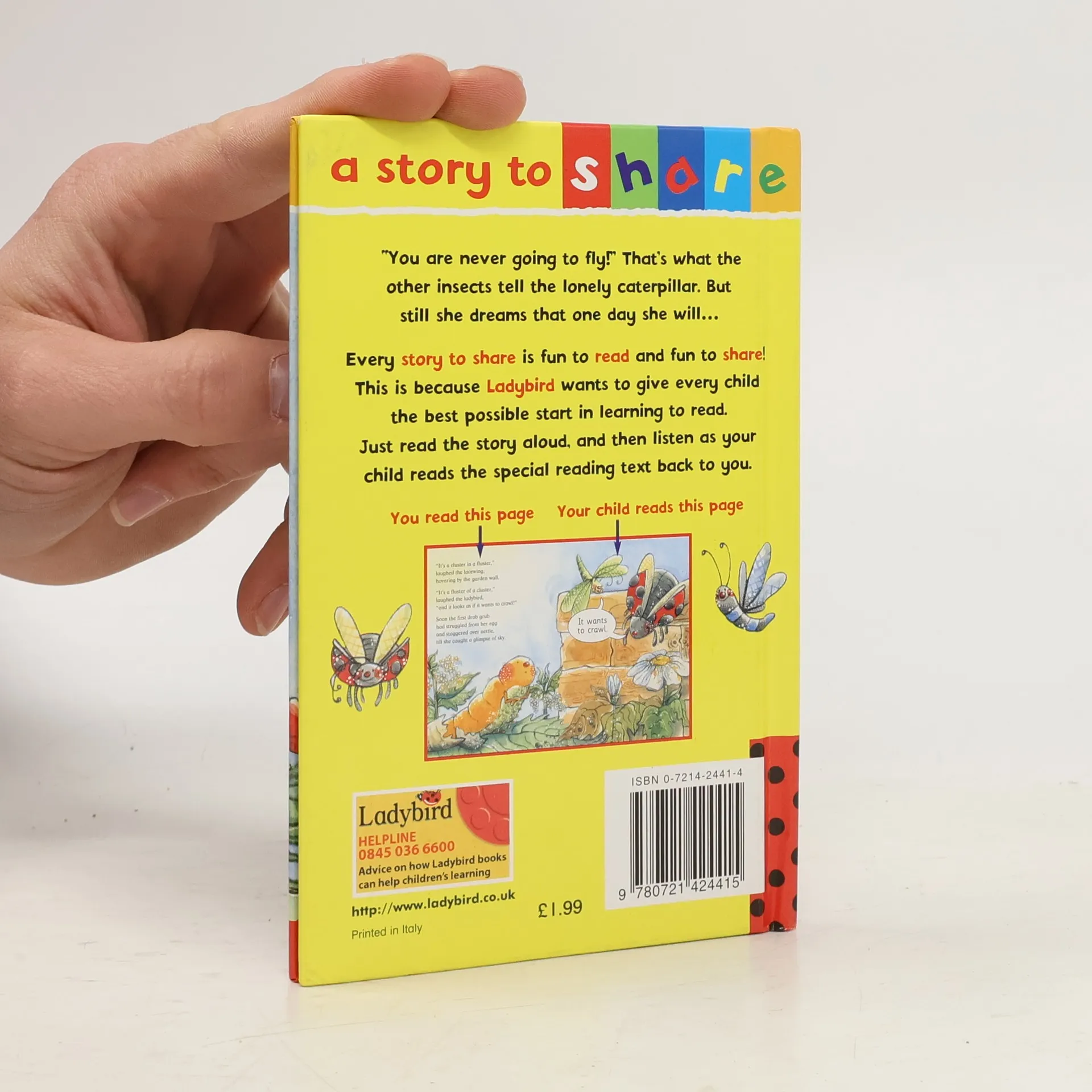 A series of eight storybooks with two reading one for adults and one for children, an ideal way of combining early reading with wonderful stories to share. A baby caterpillar dreams of flying high in the sky but all her friends just laugh. What is she to do