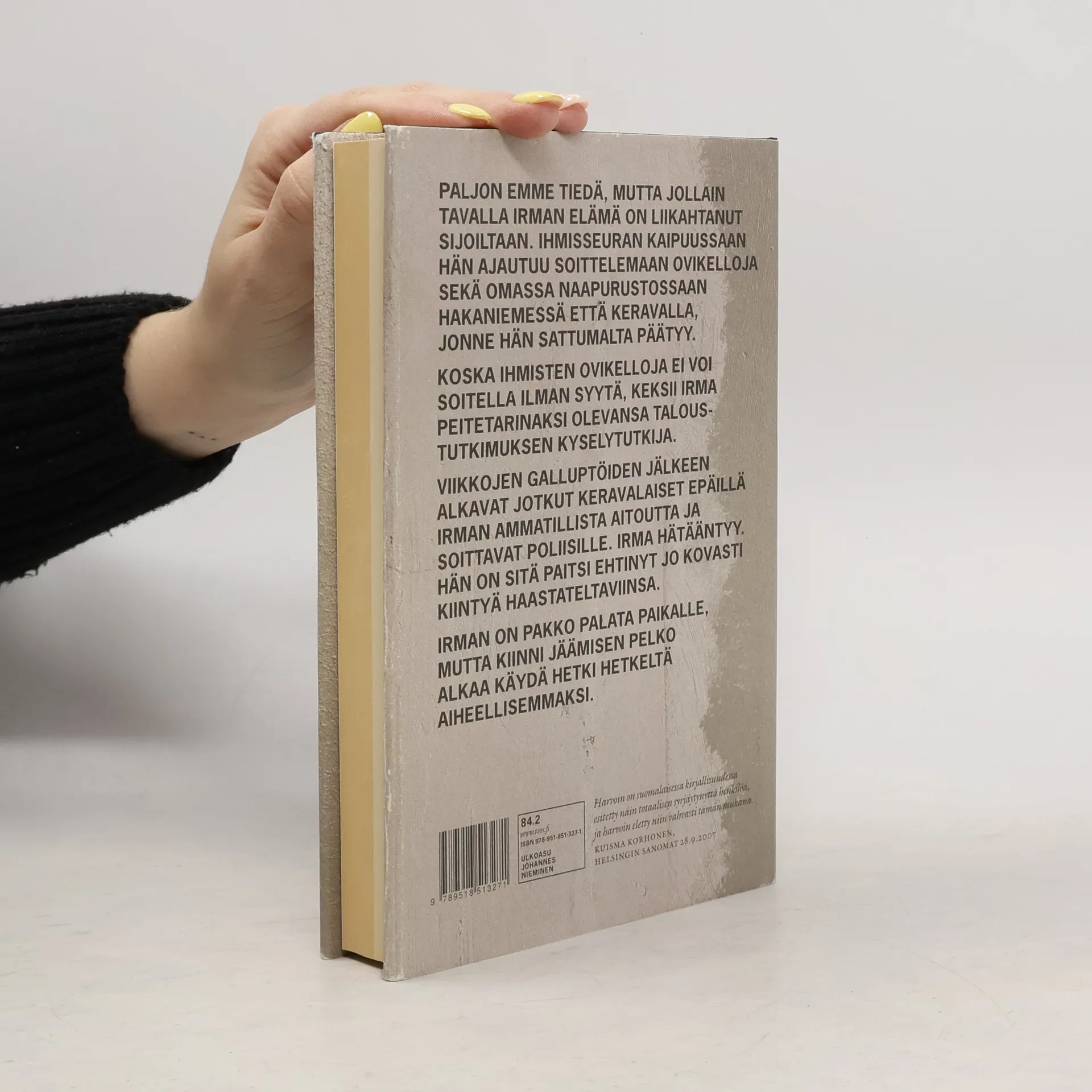 Paljon emme tiedä, mutta jollain tavalla Irman elämä on liikahtanut sijoiltaan. Ihmisseuran kaipuussaan hän ajautuu soittelemaan ovikelloja sekä omassa naapurustossaan Hakaniemessä että Keravalla, jonne hän sattumalta päätyy. Koska ihmisten ovikelloja ei voi soitella ilman syytä, keksii Irma peitetarinaksi olevansa taloustutkimuksen kyselytutkija. Viikkojen galluptöiden jälkeen alkavat jotkut keravalaiset epäillä Irman ammatillista aitoutta ja soittavat poliisille. Irma hätääntyy. Hän on sitä paitsi ehtinyt jo kovasti kiintyä haastateltaviinsa. Irman on pakko palata paikalle, mutta kiinni jäämisen pelko alkaa käydä hetki hetkeltä aiheellisemmaksi.