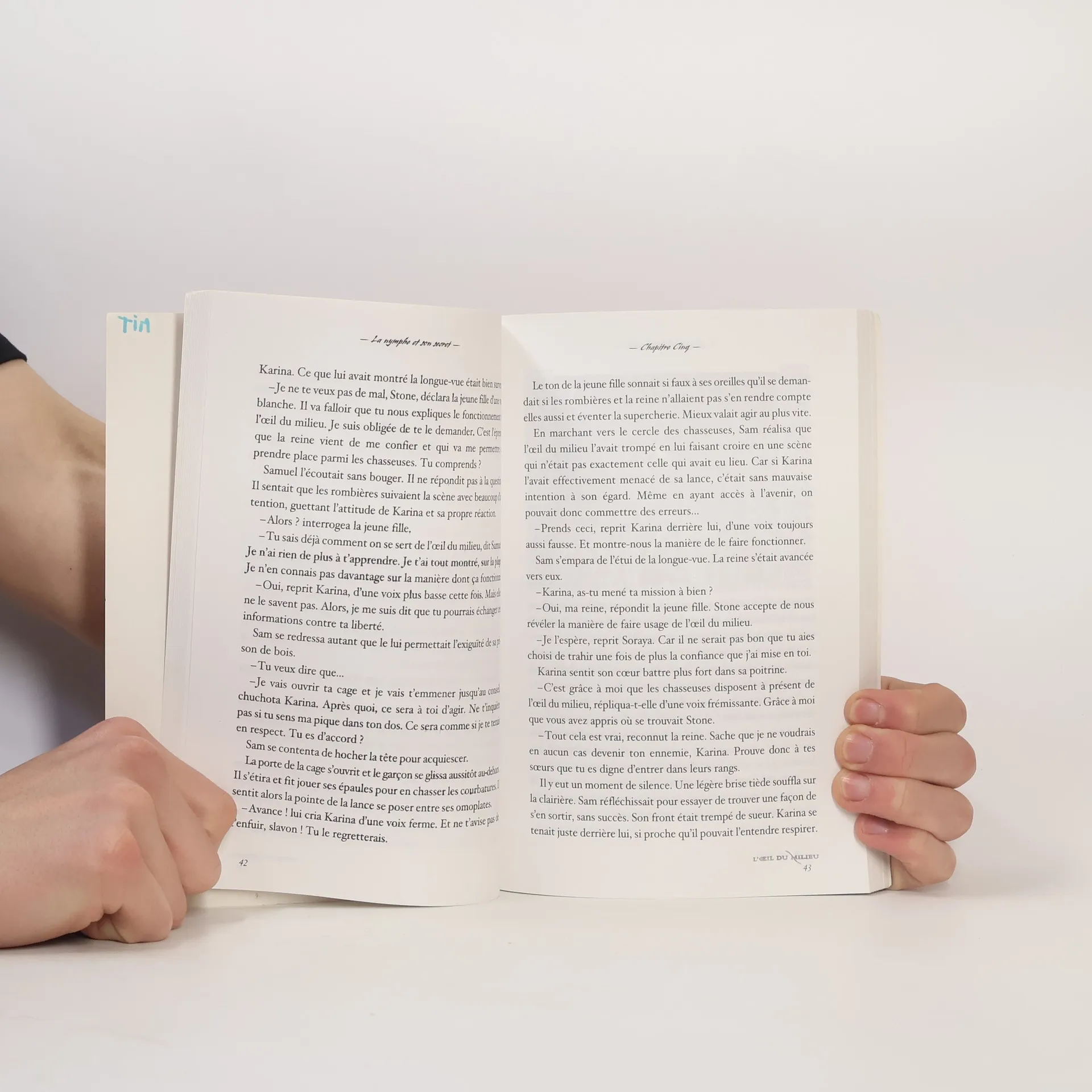 Un grand roman d'aventures, mystérieux et envoûtant Samuel a recueilli Albert du Postillon, qui s'est quasiment noyé en voulant fuir sur le radeau construit par le garçon. La nymphe Karina est à leurs côtés. C'est elle qui a donné à Samuel la clef de nacre et a permis de récupérer l'Oeil du milieu. La nymphe et le jeune homme commencent à former un couple cimenté par la confiance.A ce moment , les Rombières capturent Samuel. La reine Soraya propose un marché à Karina ; charge à elle de faire avouer au garçon comment il se sert de l'Oeil du milieu et elle sera pardonnée pour sa trahison. Mais Samuel s'enfuit avec la longue-vue. Au matin, il apprend que les Rombières veulent en finir avec Karina en la précipitant dans le gouffre de la Bouche d'Ombre.