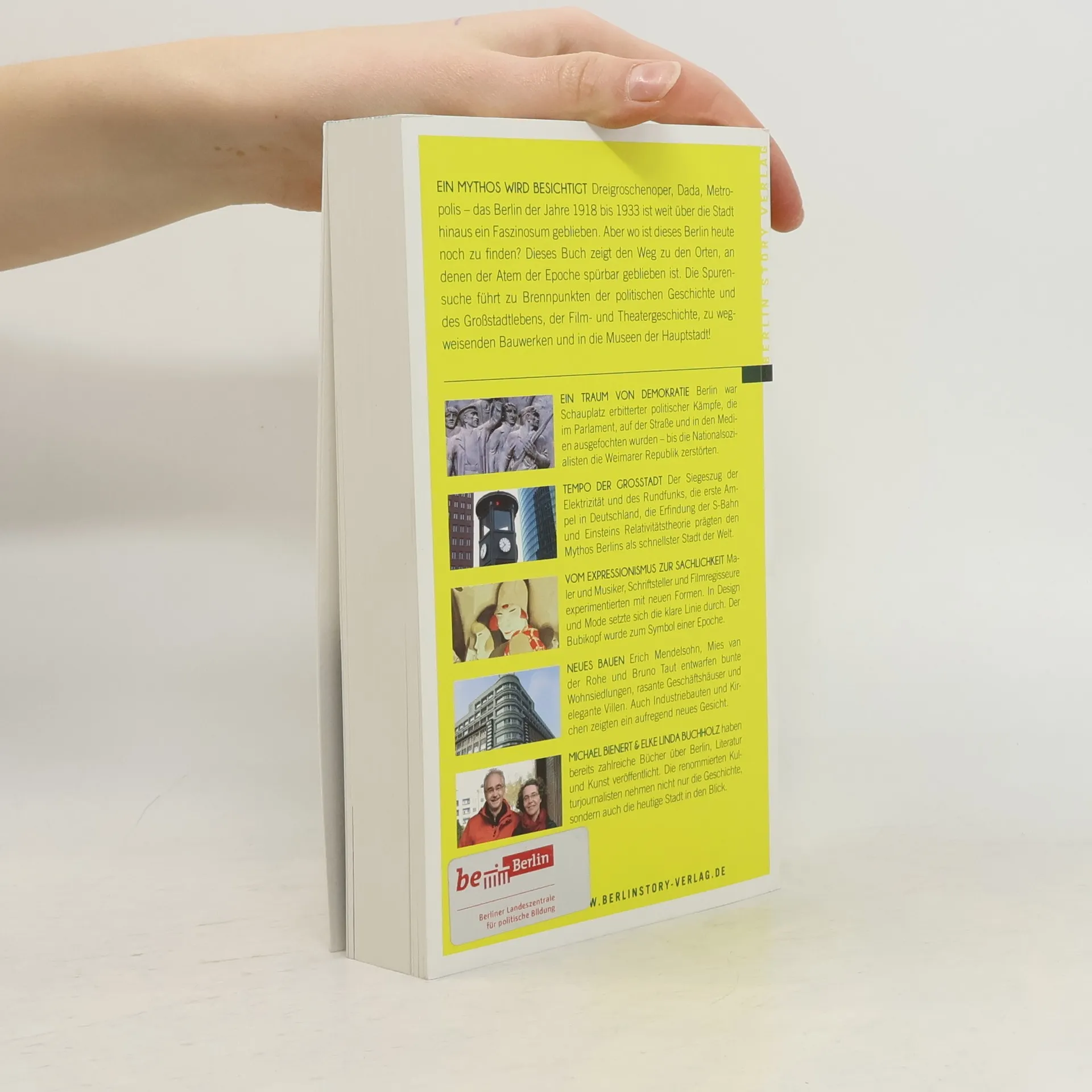 Dreigroschenoper, Bubikopf, Dada, Bauhausarchitektur, Metropolis, Straßenkämpfe – der Mythos der Zwanziger Jahre prägt bis heute das Bild Berlins. Er zieht Touristen in die Stadt und inspiriert die Berliner Stadtplanung und Architektur, das Theater, das Kino und die Literatur. An manchen Orten ist der Geist der Weimarer Republik noch greifbar: an Baustellen wie dem Alexanderplatz, auf S- und U-Bahn-Strecken oder in Wohnanlagen der Zwanziger Jahre, in jüngster Zeit sorgfältig restauriert. Die Umgestaltung der Museumslandschaft seit der Wiedervereinigung hat neue Anlaufpunkte geschaffen, an denen man sich über Film, Malerei, Design, Geschichte und Stadtentwicklung zwischen 1918 und 1933 informieren kann. Zum ersten Mal liegt nun ein Stadtführer vor, der hilft, die Zwanziger Jahre mit all ihren Facetten im wiedervereinigten Berlin wiederzuentdecken. Zahlreiche Abbildungen, Register und ein Serviceteil erleichtern die Orientierung. Michael Bienert, Autor zahlreicher Bücher zur Kulturgeschichte Berlins, schreibt als Journalist für den 'Tagesspiegel' und die 'Stuttgarter Zeitung'. Elke Linda Buchholz hat mehrere Bücher über Bildende Künstler (u. a. Picasso, Goya) veröffentlicht, die in zahlreiche Sprachen übersetzt wurden.