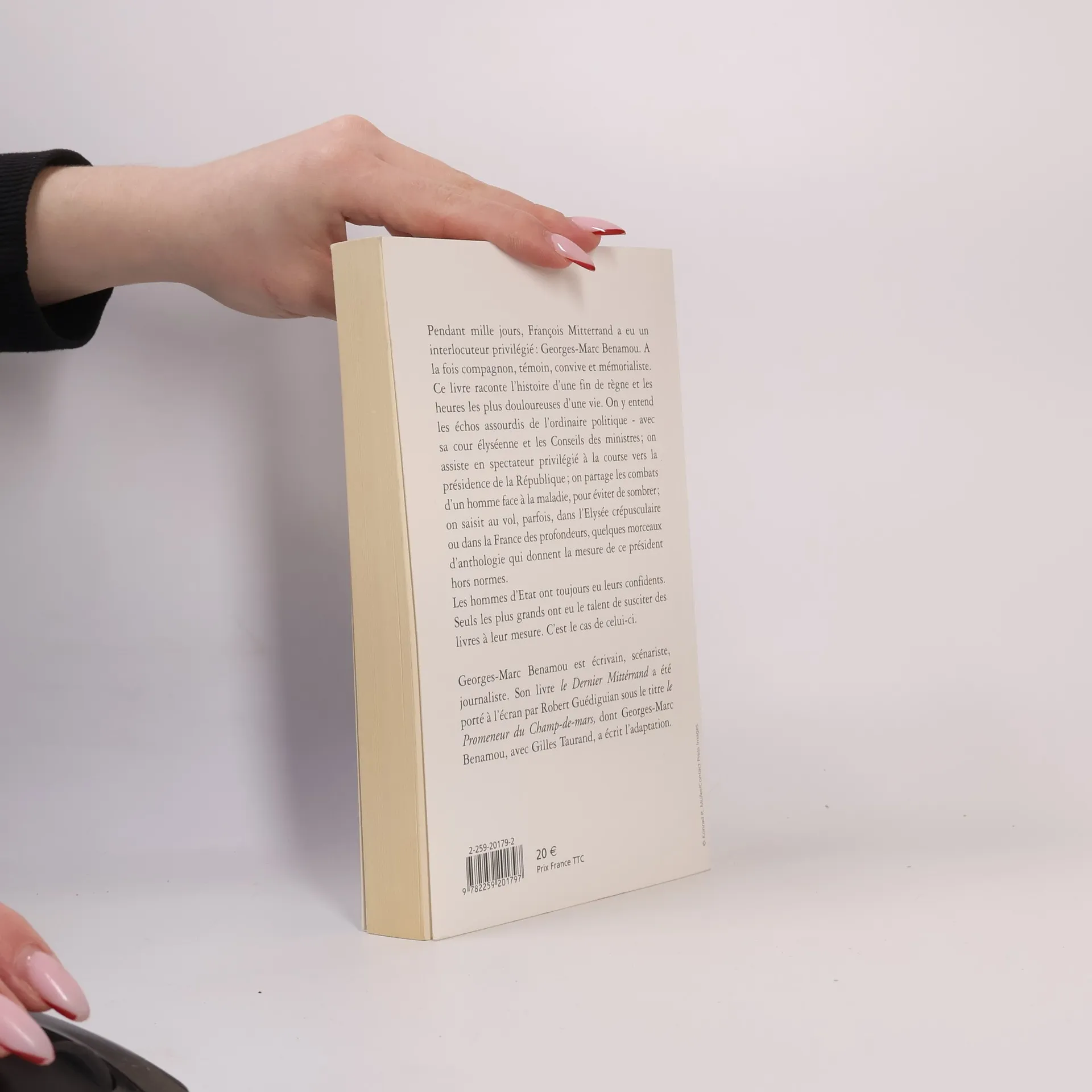 Pendant mille jours, François Mitterrand a eu un interlocuteur privilégié : Georges-Marc Benamou. A la fois compagnon, témoin, convive et mémorialiste. Ce livre raconte l'histoire d'une fin de règne et les heures les plus douloureuses d'une vie. On y entend les échos assourdis de l'ordinaire politique - avec sa cour élyséenne et les Conseils des ministres ; on assiste en spectateur privilégié à la course vers la présidence de la République ; on partage les combats d'un homme face à la maladie, pour éviter de sombrer ; on saisit au vol, parfois, dans l'Elysée crépusculaire ou dans la France des profondeurs, quelques morceaux d'anthologie qui donnent la mesure de ce président hors normes. Les hommes d'Etat ont toujours eu leurs confidents. Seuls les plus grands ont eu le talent de susciter des livres à leur mesure. C'est le cas de celui-ci.