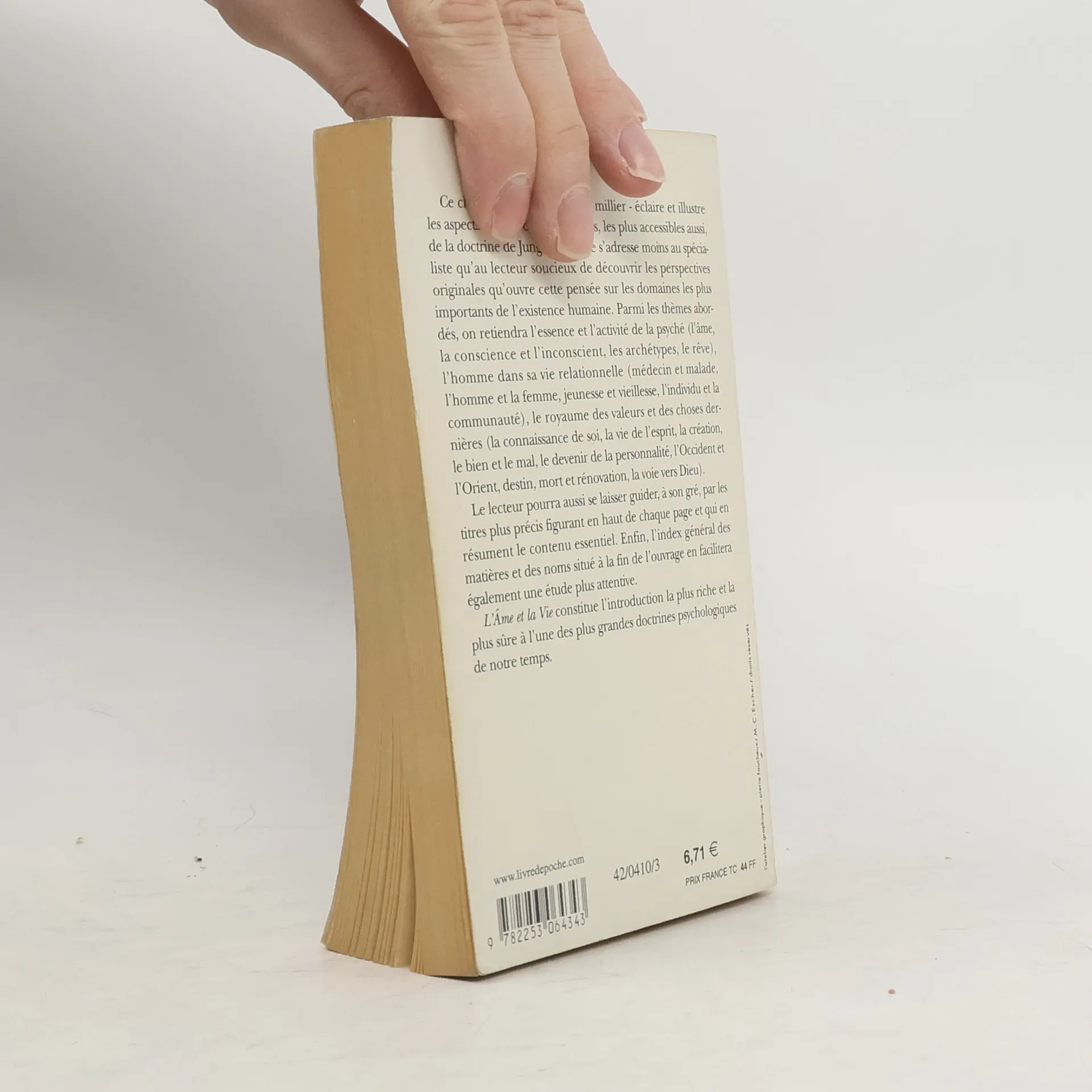 Ce choix de textes - plus d'un millier - éclaire et illustre les aspects les plus caractéristiques, les plus accessibles aussi, de la doctrine de Jung. L'ouvrage s'adresse moins au spécialiste qu'au lecteur soucieux de découvrir les perspectives originales qu'ouvre cettre pensée sur les domaines les plus importants de l'existence humaine. Parmi les thèmes abordés, on retiendra l'essence et l'activité de la psyché (l'âme, la conscience et l'inconscient, les archétypes, le rêve), l'homme dans sa vie relationnelle (médecin et malade, l'homme et la femme, jeunesse et vieillesse, l'individu et la communauté), le royaume des valeurs et des choses dernières (la connaissance de soi, la vie de l'esprit, la création, le bien et le mal, le devenir de la personnalité, l'Occident et l'Orient, destin, mort et rénovation, la voie vers Dieu). Le lecteur pourra aussi se laisser guider, à son gré, par les titres plus précis figurant en haut de chaque page et qui en résument le contenu essentiel. Enfin, l'index général des matières et des noms situé à la fin de l'ouvrage en facilitera également une étude plus attentive. L'Ame et la Vie constitue l'introduction la plus riche et la plus sûre à l'une des plus grandes doctrines psychologiques de notre temps.
