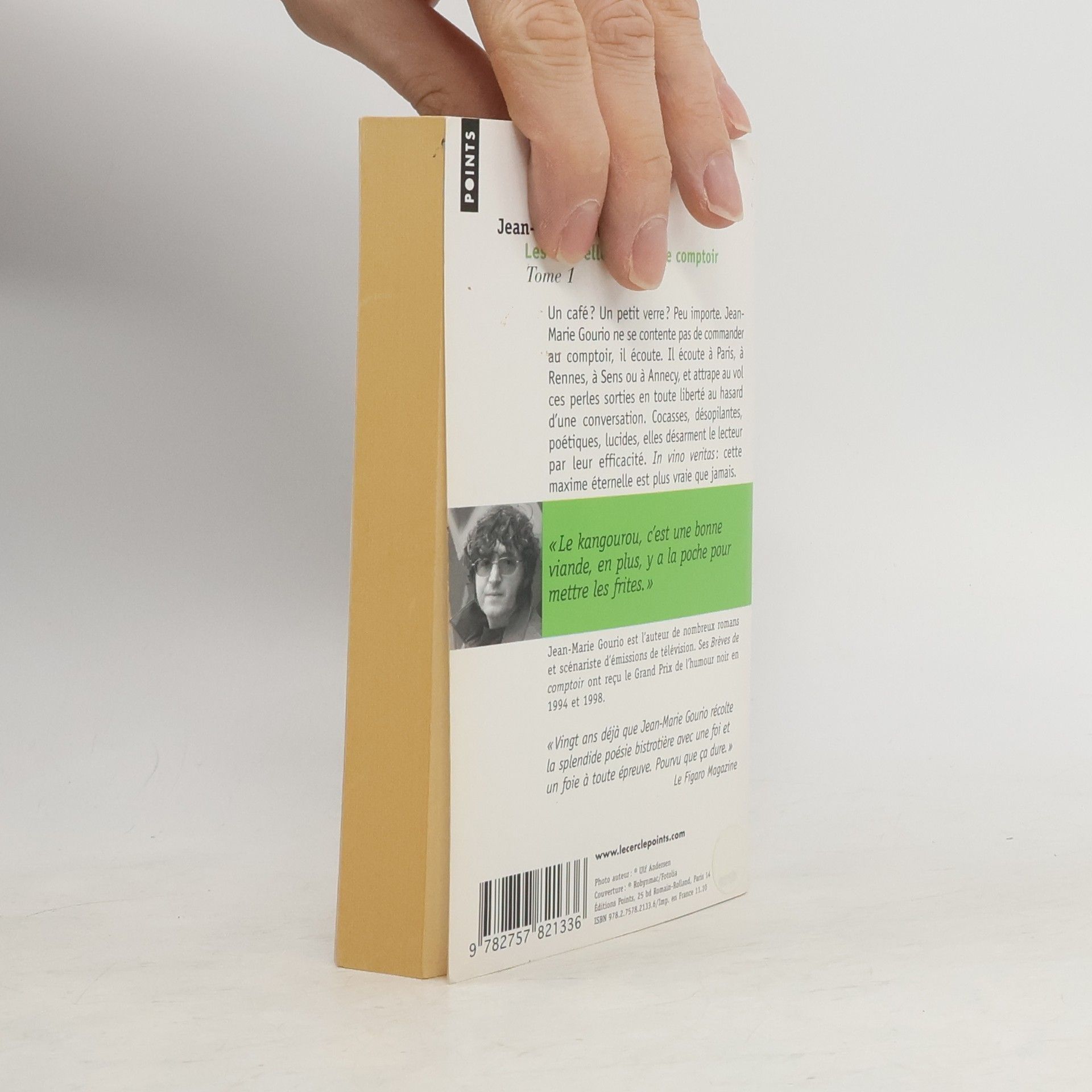 Un café? Un petit verre? Peu importe. Jean-Marie Gourio ne se contente pas de commander au comptoir, il écoute. Il écoute à Paris, à Rennes, à Sens ou à Annecy, et attrape au vol ces perles sorties en toute liberté au hasard d'une conversation. Cocasses, désopilantes, poétiques, lucides, elles désarment le lecteur par leur efficacité. In vino cette maxime éternelle est plus vraie que jamais.«Le kangourou, c'est une bonne viande, en plus, y a la poche pour mettre les frites. » « Vingt ans déjà que Jean-Marie Gourio récolte la splendide poésie bistrotière avec une foi et un foie à toute épreuve. Pourvu que ça dure. » - Le Figaro Magazine