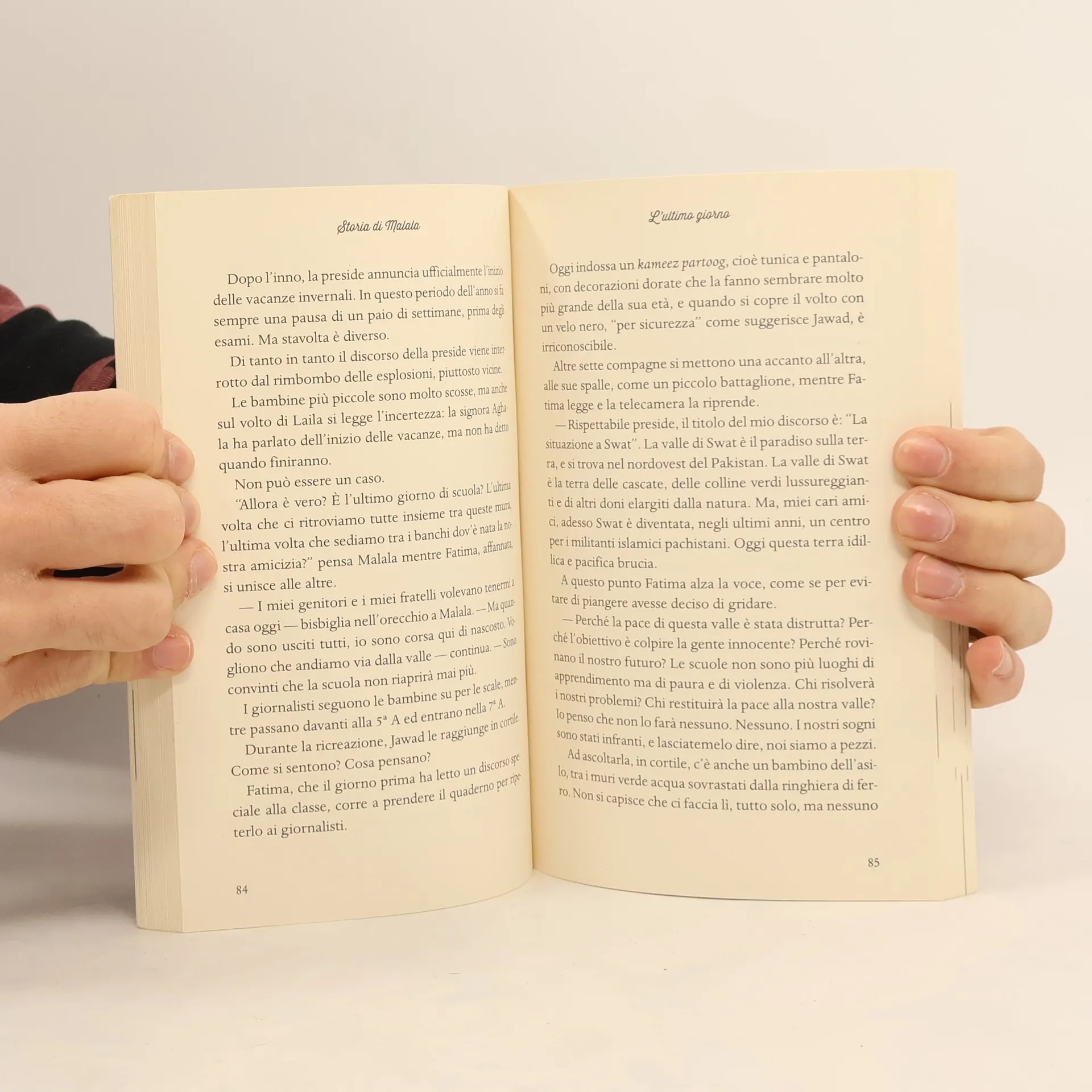 Malala ha solo undici anni quando decide di alzare la voce. E ne ha quindici quando, in un giorno come tanti, mentre insieme alle sue amiche sta andando a scuola, i talebani tentano di ucciderla. Perché? Nel suo Paese, il Pakistan, si è scontrata contro chi vuole togliere alle ragazze e alle donne i loro diritti. Con l’appoggio della sua famiglia, Malala ha scelto di urlare il suo “no”. Poco più che bambina, ha lottato senza armi né violenza, ma con il coraggio delle parole e dell’istruzione, con la forza della verità e dell’innocenza. A metà tra il documentario e il diario, attraverso gli occhi di Malala e il cambio delle stagioni nella valle di Swat, scopriamo la vita e le paure, le amicizie e i sogni di una ragazza lontana eppure vicinissima. La storia di Malala Yousafzai, la più giovane candidata al Nobel per la pace, è stata raccontata dai giornali e dalle televisioni di tutto il mondo. Oggi è in un libro destinato ai suoi coetanei, fatto di parole e immagini, cronaca e poesia.