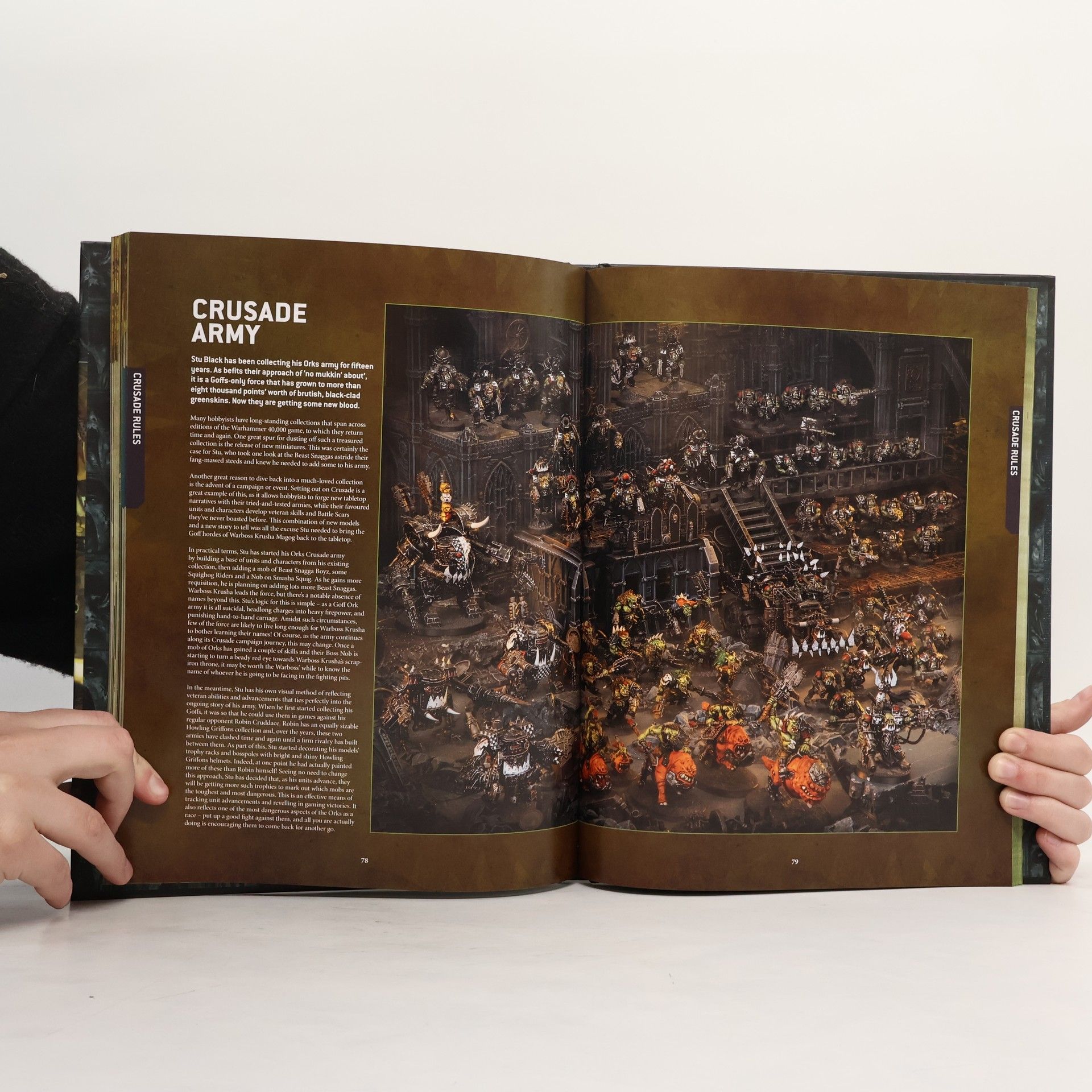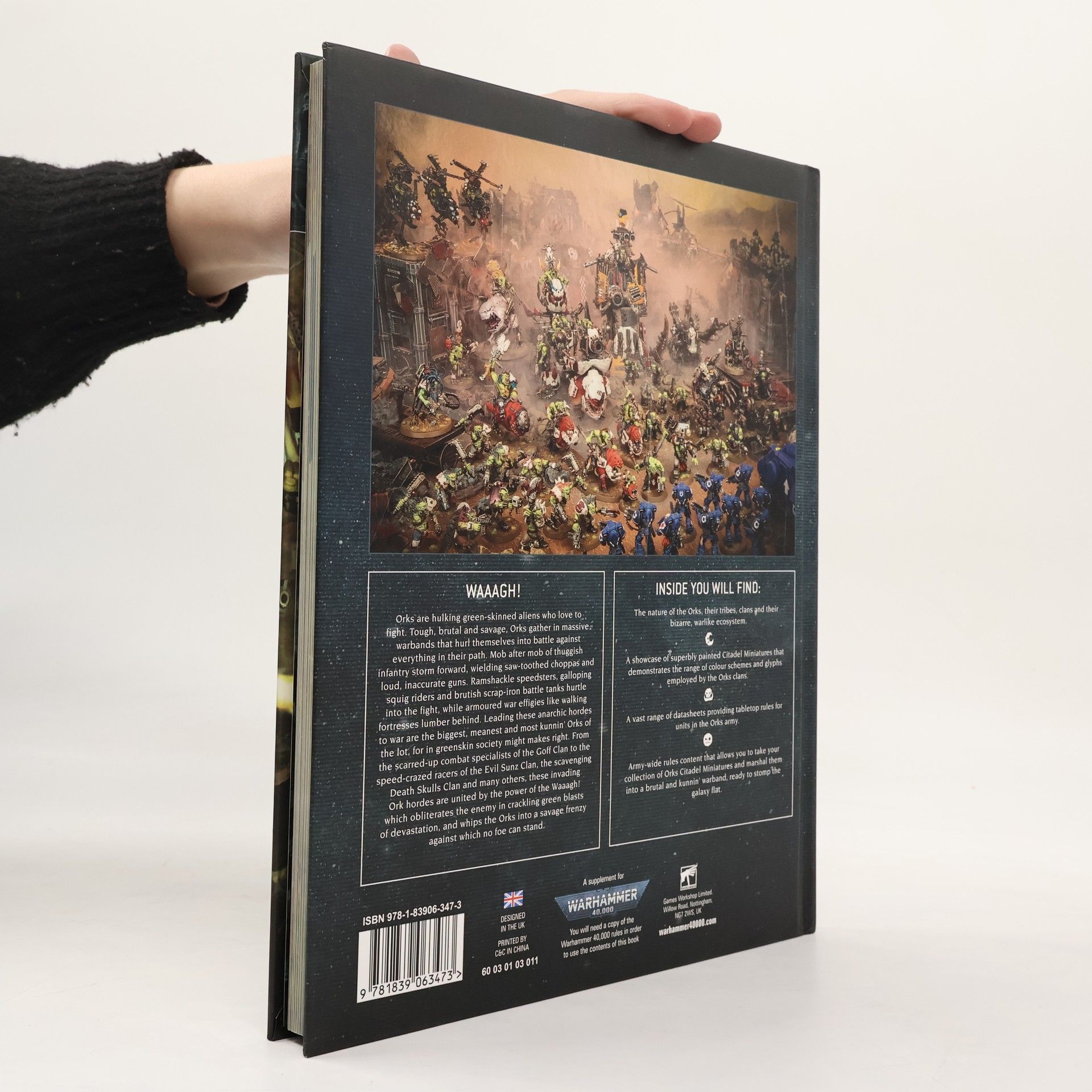 This 136-page book contains a treasure trove of background information covering prominent Ork conflicts from the past and present, accompanied by stunning artwork and galleries of painted miniatures. Codex: Orks grants you a detailed look into the organisation of Ork armies, be they small planetary raiding forces or monstrous Waaagh!s, as well as the troops, leaders, and war machines that fight among them. The book also has everything you need to know to field them in battle on the tabletop, including 61 datasheets, 7 Clan Kulturs, Stratagems, Relics, and more.