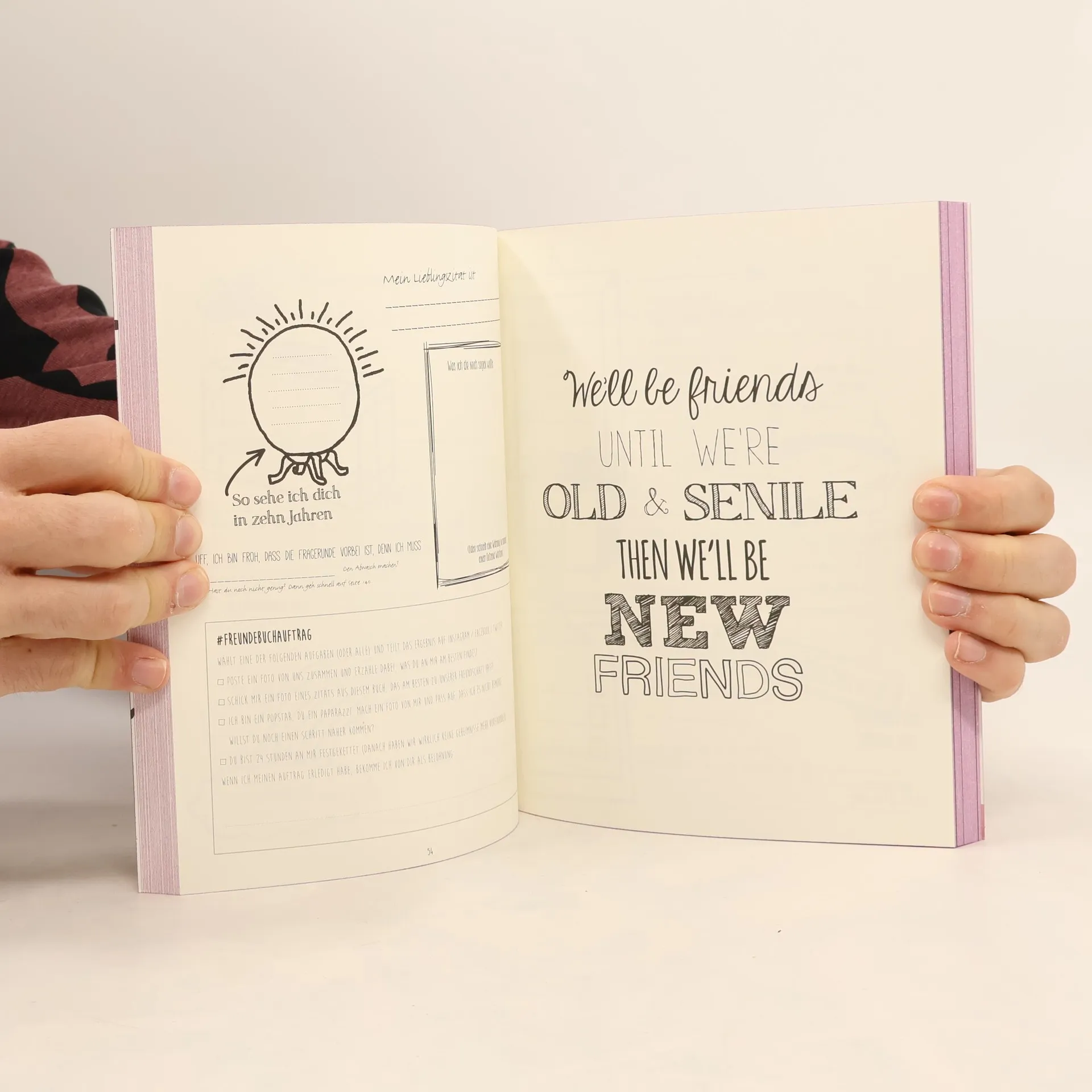 Dieses Buch ist ein Freundebuch für Erwachsene, in dem Freunde überraschende und oft peinliche Fragen beantworten. Es bietet eine unterhaltsame Möglichkeit, Erinnerungen zu sammeln und mehr über einander zu erfahren. Ideal als Geschenk oder für gemeinsame Momente, auch auf der Toilette!