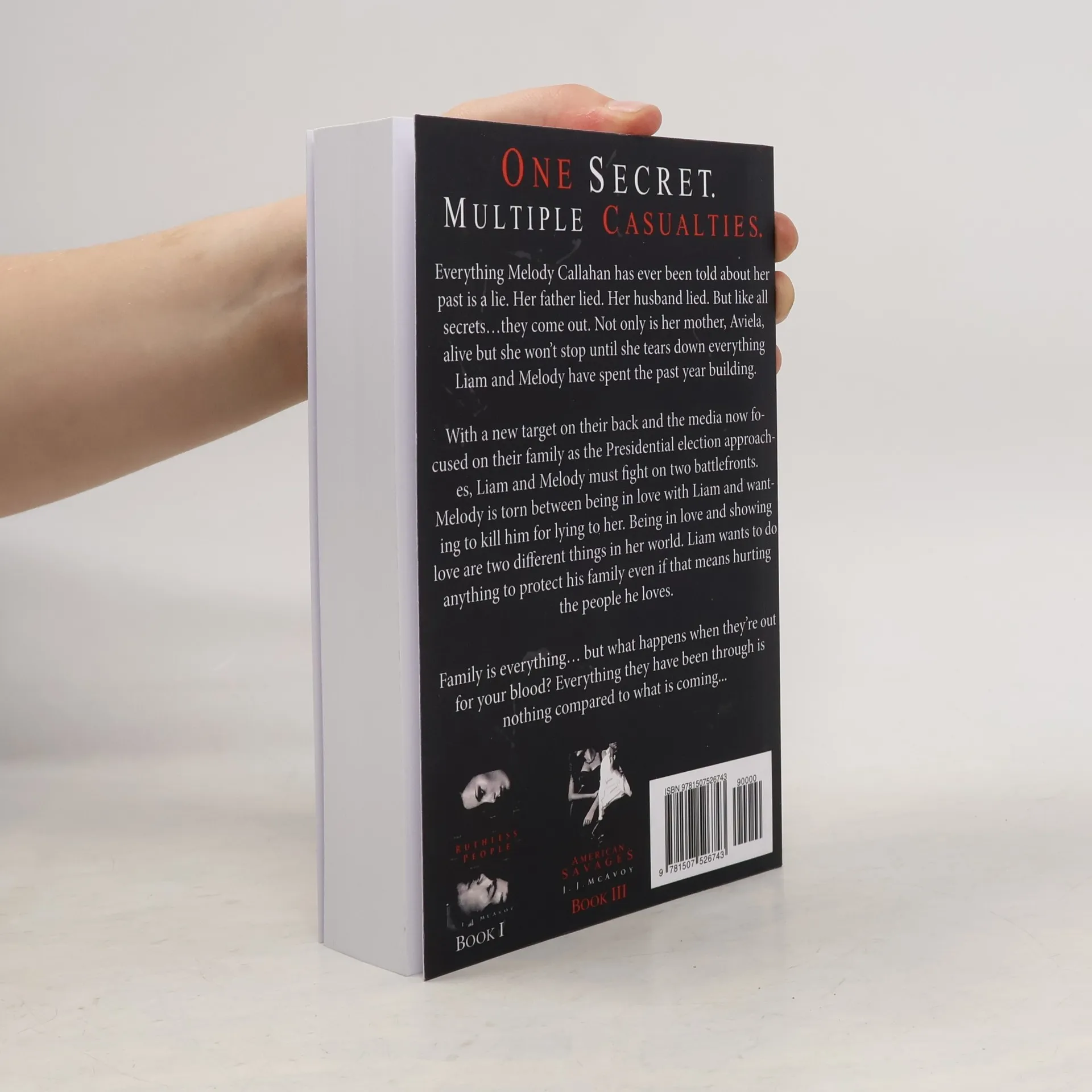 Ruthless People #2"One Secret, Multiple Casualties."Everything Melody Callahan has ever been told about her past is a lie. Her father lied. Her husband lied. But like all secrets…they come out. Not only is her mother, Aviela, alive but she won’t stop until she tears down everything Liam and Melody have spent the past year building.With a new target on their back and the media now focused on their family as the Presidential election approaches, Liam and Melody must fight on two battlefronts. Melody is torn between being in love with Liam and wanting to kill him for lying to her. Being in love and showing love are two different things in her world. Liam wants to do anything to protect his family, even if that means hurting the people he loves.Family is everything… but what happens when they’re out for your blood? Everything they have been through is nothing compared to what is coming... Check out more thrilling titles in the Ruthless People RUTHLESS PEOPLE #1 "One Marriage + Two Bosses = 3X the Chaos."THE UNTOUCHABLES (#2) "One Secret, Multiple Casualties."AMERICAN SAVAGES (#3) "Villains by Choice."A BLOODY KINGDOM (#4) “After the battle, sharpen your knives.”DECLAN + CORALINE (prequel novella that takes place 2 years before Ruthless People) "You don't find love; it finds you."And look for the Ruthless People spinoff, Children of Vice--out 5.17.17 “From the Ruthless, Vice shall Rise.”