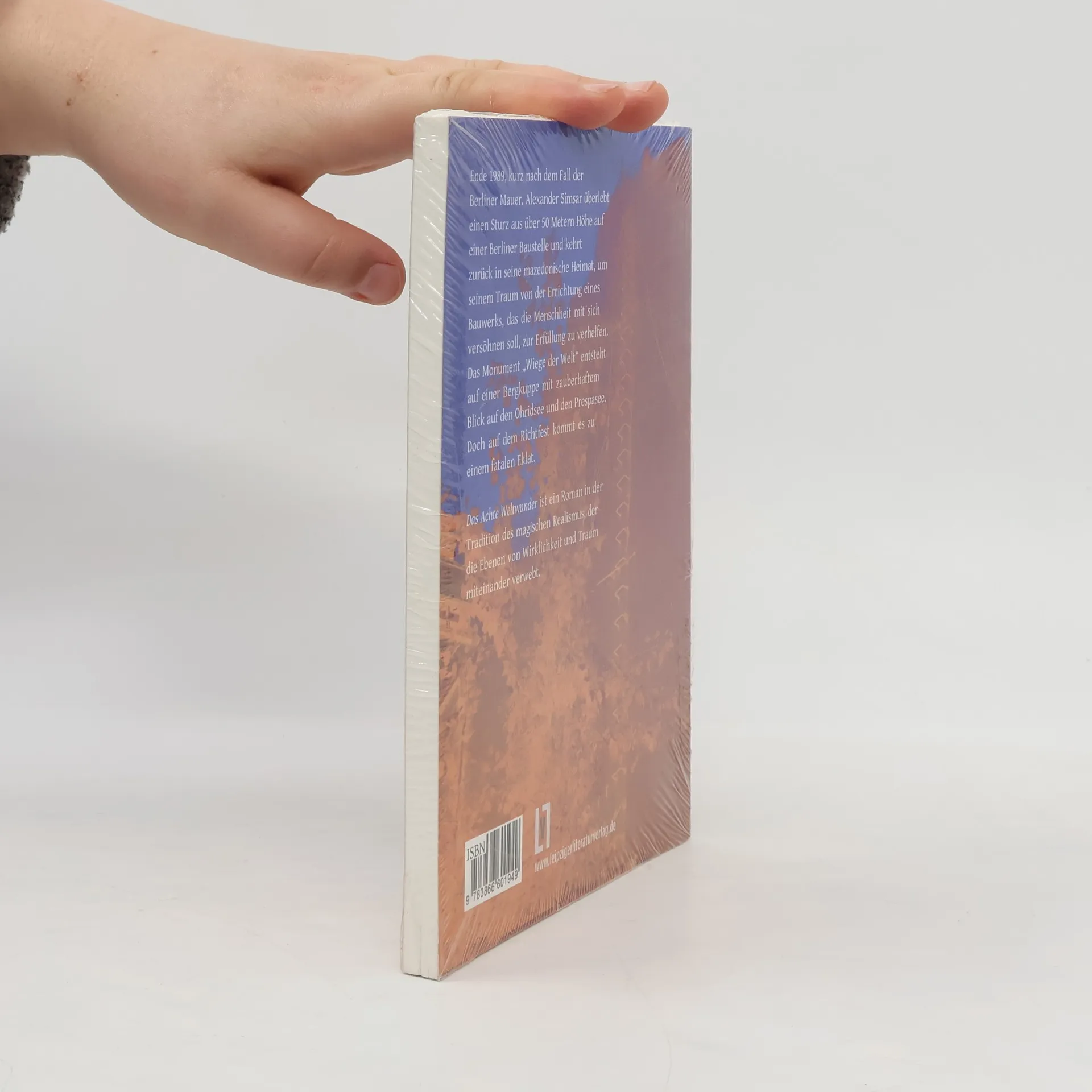 Ende 1989, kurz nach dem Fall der Berliner Mauer. Alexander Simsar, Nachkomme einer langen Reihe mazedonischer Fassadenmeister, hat einen Traum. Nachdem er einen Sturz aus über 50 Metern Höhe auf einer Berliner Baustelle überlebt hat, begibt er sich in seine Heimat, um seinem Traum durch die Errichtung eines Bauwerks, das die Menschheit mit sich versöhnen soll, zur Erfüllung zu verhelfen. Wohlwollende Unterstützung erhält das Vorhaben von höchster Stelle und das Projekt wird umgesetzt: Seine „Wiege der Welt“ entsteht auf einer Bergkuppe mit zauberhaftem Blick auf den Ohridsee und den Prespasee. Doch Ungemach droht von ungeahnter Seite und auf dem Richtfest für das Monument kommt es schließlich zu einem fatalen Eklat. „Das Achte Weltwunder“ ist ein Roman in der Tradition des magischen Realismus, der die Ebenen von Wirklichkeit und Traum miteinander verwebt. Er ist eine Hommage an den menschlichen Optimismus. „Das Achte Weltwunder“ ist ein Roman mit dem ästhetischen und kryptomessianischen Anspruch, die Sehnsucht zu steigern, das Unsichtbare sichtbar zu machen und ein Wunder zu erbauen, das die Natur ästhetisieren und die Ästhetik und die Schönheit naturalisieren wird. Er ist voller gediegener Schwermut, gepaart mit funkelnder Ironie und humoristischer Inspiration. Dadurch wird eine diskrete Distanz zu den Ereignissen des Romans erreicht. Eben das macht das Unmögliche möglich, das Unbeständige beständig, das Irreale real, das Imaginative wirklich. Der Roman und sein Autor suggerieren uns einen neuen Kosmopolitismus, eine neue Utopie, eine neue Pulsation des Universums, als liefe alles im Schopenhauerschen Sinne: Das, was wir suchen, das, was wir erwarten, wartet schon auf uns.„ Georgi Stardelov “Ce roman au lyrisme débridé, plein d'humour et de tendresse, évoque la tentative de construction de la huitième merveille du monde par un architecte macédonien. C'est une parabole: dans un monde en panne d'utopie, l'idéalisme du héros affronte une conspiration internationale, dans une ambiance follement. balkanique." Klappentext der französischen Ausgabe „La huitième merveille du monde“