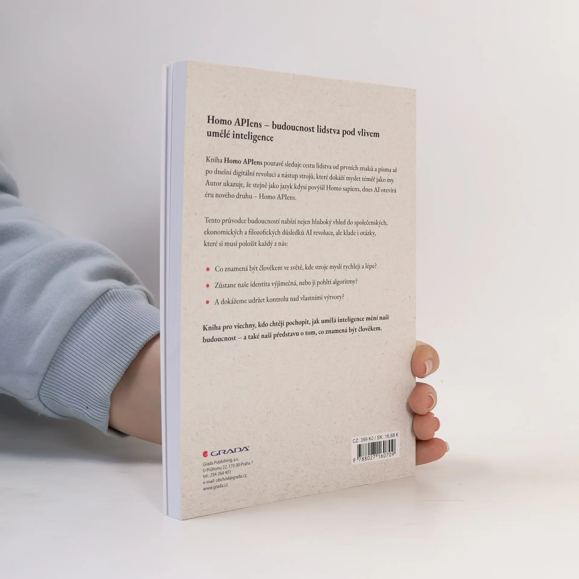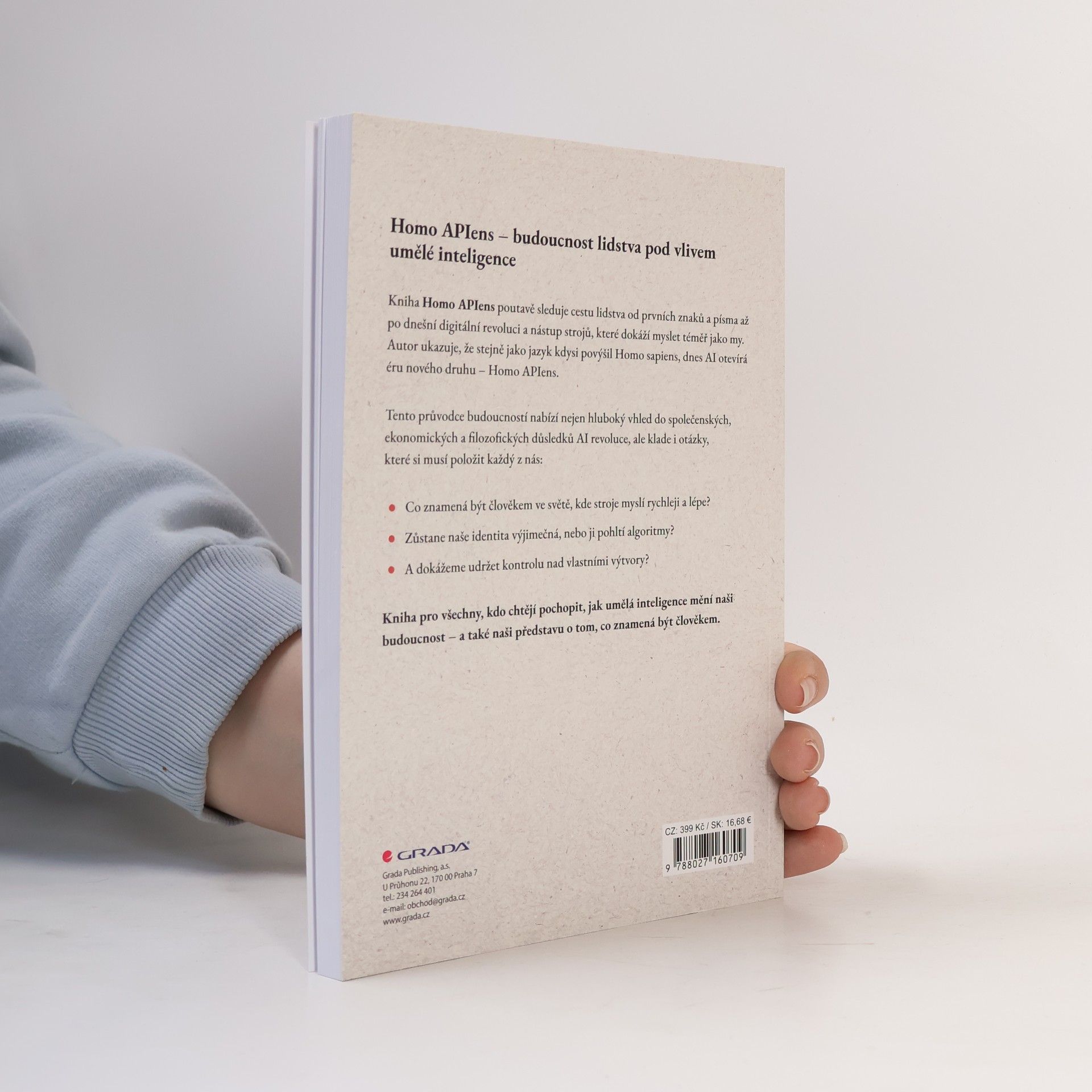 Homo APIens – budoucnost lidstva pod vlivem umělé inteligence Nebude to klimatická krize ani pandemie, ale náš vlastní výtvor: umělá inteligence. Kniha Homo APIens poutavě sleduje cestu lidstva od prvních znaků a písma až po dnešní digitální revoluci a nástup strojů, které dokáží myslet téměř jako my. Autor ukazuje, že stejně jako jazyk kdysi povýšil Homo sapiens, dnes AI otevírá éru nového druhu – Homo APIens. Tento průvodce budoucností nabízí nejen hluboký vhled do společenských, ekonomických a filozofických důsledků AI revoluce, ale klade i otázky, které si musí položit každý z nás: Co znamená být člověkem ve světě, kde stroje myslí rychleji a lépe? Zůstane naše identita výjimečná, nebo ji pohltí algoritmy? A dokážeme udržet kontrolu nad vlastními výtvory? Kniha pro všechny, kdo chtějí pochopit, jak umělá inteligence mění naši budoucnost – a také naši představu o tom, co znamená být člověkem.
