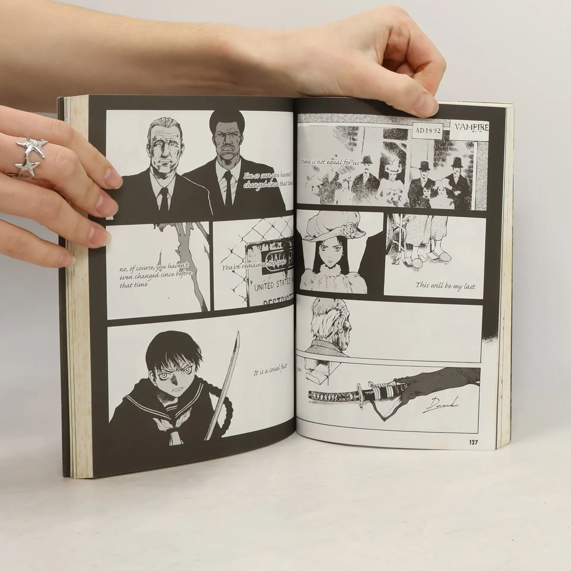 Benkyo Tamaoki updates a Vietnam War-era anime story to present-day Japan. The immortal Saya returns -- still clad in her trademark sailor suit and armed with an ancient Samurai sword -- to continue her holy war against the vampiric Chiropterans. Like Buffy the Vampire Slayer in tone but with graphic violence, this book is recommended for mature readers.