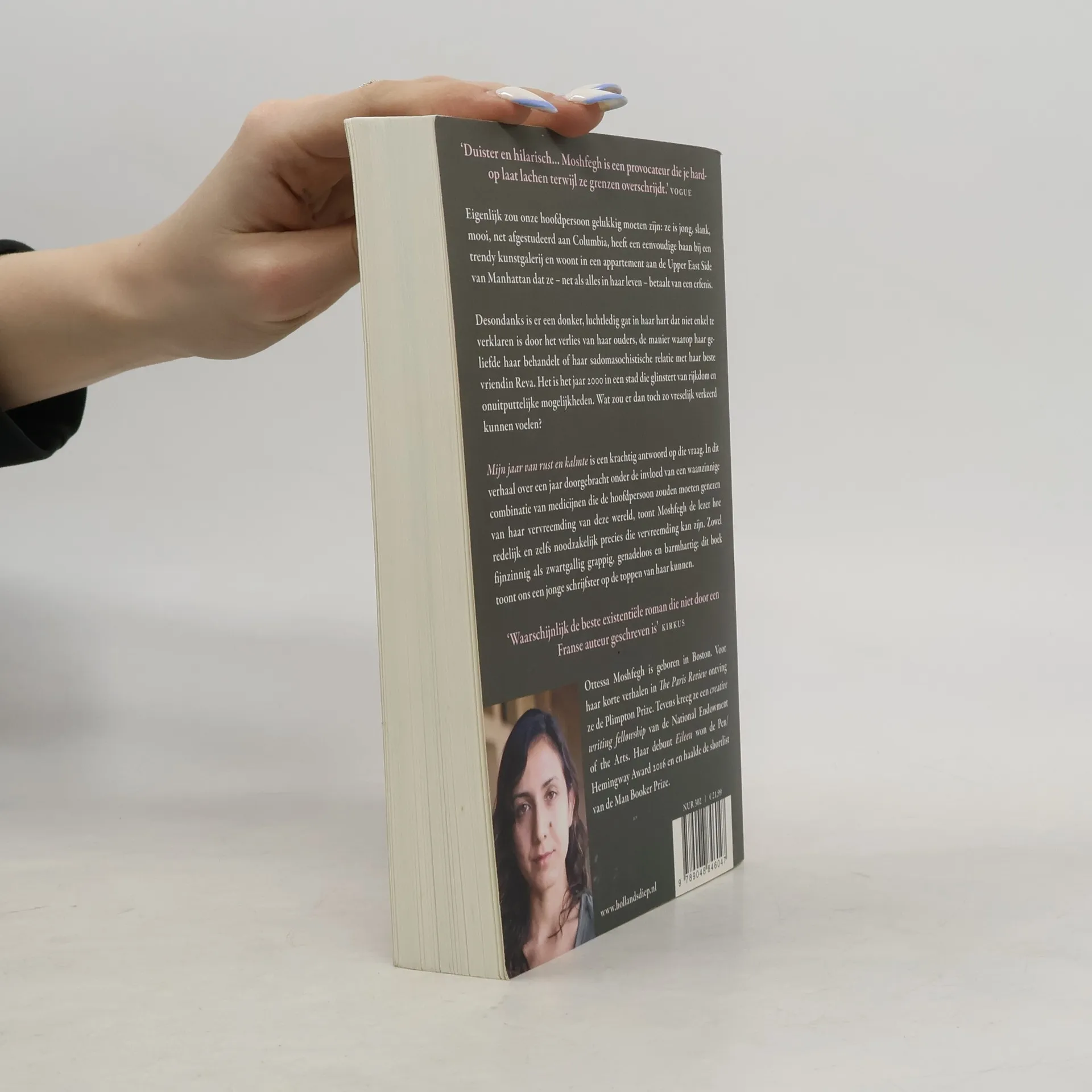 <p>Eigenlijk zou onze hoofdpersoon gelukkig moeten zijn: ze is jong, slank, mooi, net afgestudeerd aan Columbia, heeft een eenvoudige baan bij een trendy kunstgalerij en woont in een appartement aan de Upper East Side van Manhattan dat ze - net als alles in haar leven - betaalt van een erfenis. </p><p>Desondanks is er een donker, luchtledig gat in haar hart dat niet enkel te verklaren is door het verlies van haar ouders, de manier waarop haar geliefde haar behandelt of haar sadomasochistische relatie met haar beste vriendin Reva. Het is het jaar 2000 in een stad die glinstert van rijkdom en onuitputtelijke mogelijkheden. Wat zou er dan toch zo vreselijk verkeerd kunnen voelen?</p><p><i>Mijn jaar van rust en kalmte </i>is een krachtig antwoord op die vraag. In dit verhaal over een jaar doorgebracht onder de invloed van een waanzinnige combinatie van drugs die de hoofdpersoon zouden moeten genezen van haar vervreemding van deze wereld, toont Moshfegh de lezer hoe redelijk en zelfs noodzakelijk precies die vervreemding kan zijn. Zowel fijnzinnig als zwartgallig grappig, genadeloos en barmhartig: dit boek toont ons een jonge, veelbelovende schrijfster op de toppen van haar kunnen.</p>