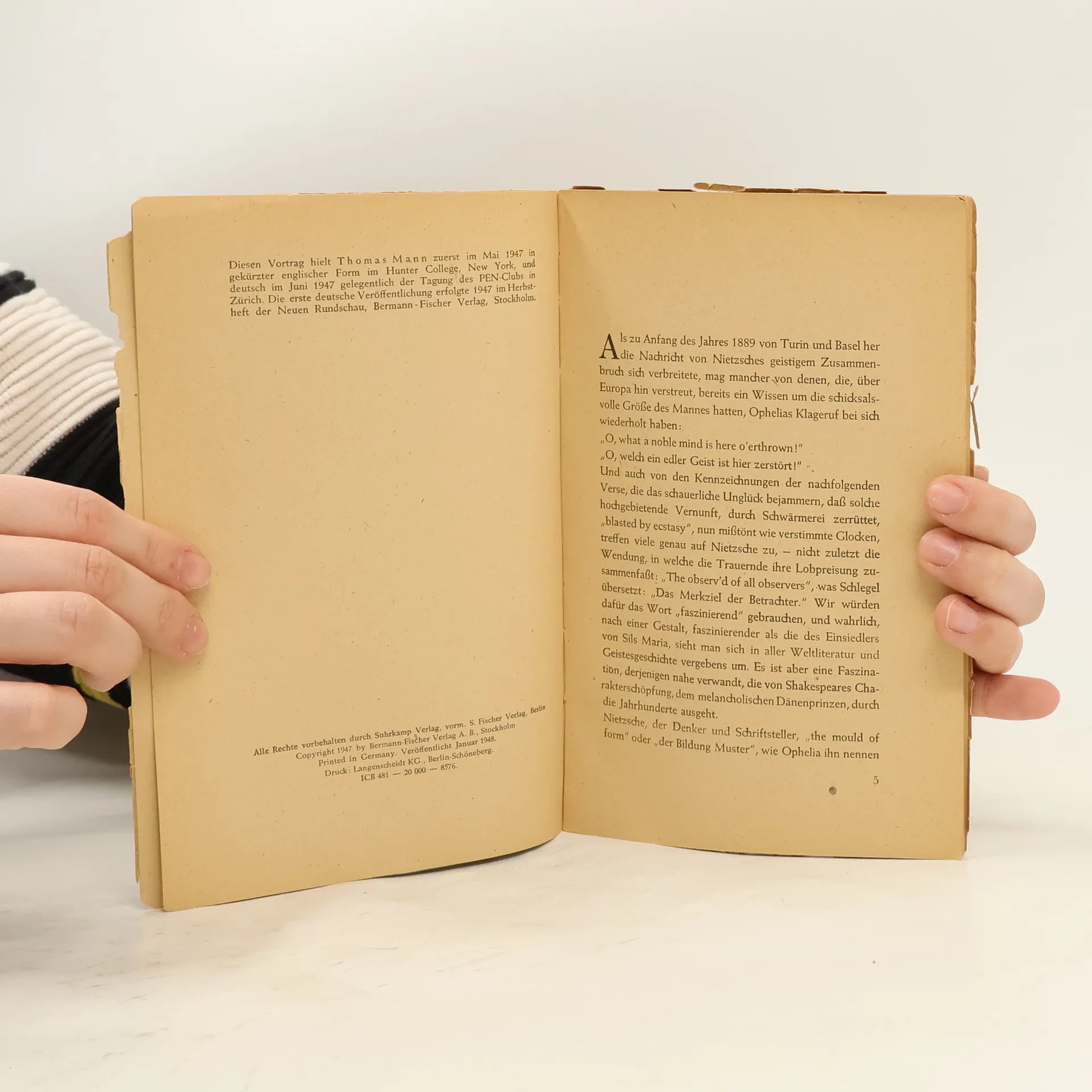 Nietzsches Philosophie im Lichte unserer Erfahrung. Vortrag, Thomas Mann
