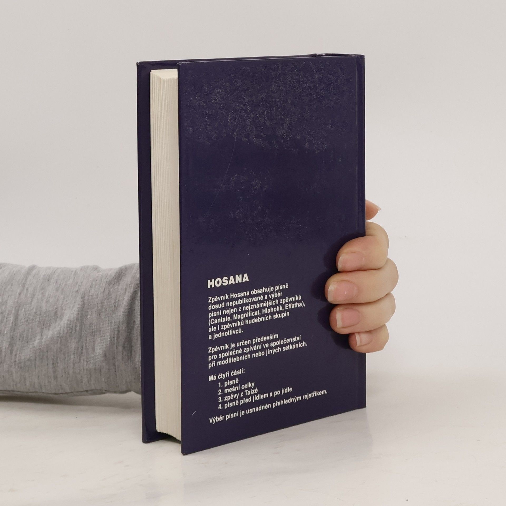 Zpěvník Hosana obsahuje písně dosud nepublikované a výběr písní nejen z nejznámějších zpěvníků (Cantate, Magnificat, Hlaholík, Effatha), ale i zpěvníků hudebních skupin a jednotlivců. Zpěvník je určen především pro společné zpívání ve společenstvích při modlitebních nebo jiných setkáních. Má čtyři části: 1.písně 2.mešní celky 3.zpěvy z Taizé 4.písně před jídlem a po jídle. Výběr písní je usnadněn přehlednými rejstříky.