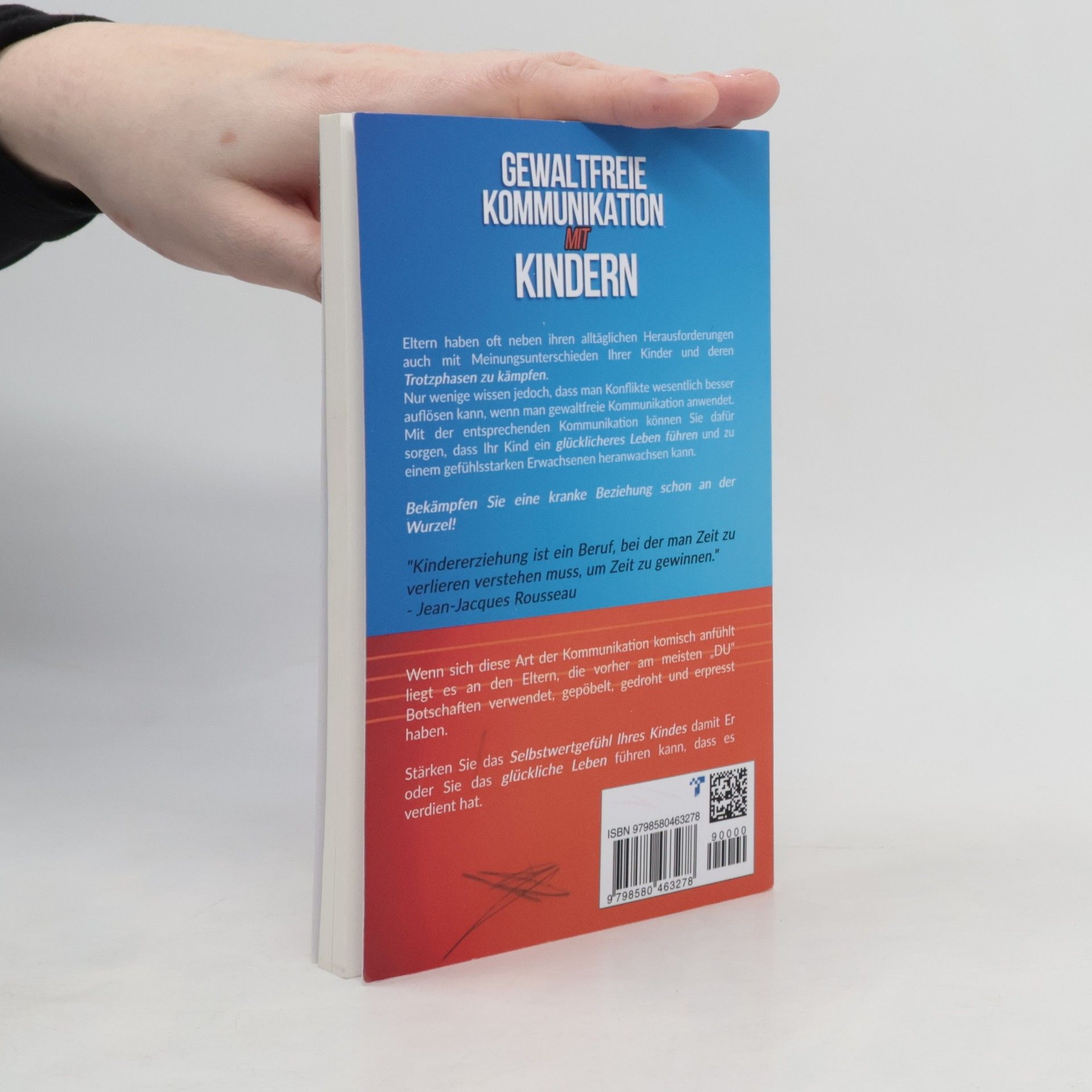Mit gezielter Kommunikation zu mehr Respekt und weniger Konflikten für ein friedvolles Familienleben. Lernen Sie die harmonische Kommunikation mit Ihrem Kind! Eltern kämpfen oft mit Meinungsverschiedenheiten und Trotzphasen ihrer Kinder. Viele wissen jedoch nicht, dass Konflikte durch gewaltfreie Kommunikation besser gelöst werden können. Diese Kommunikationsform fördert ein glücklicheres Leben für Ihr Kind und unterstützt es dabei, zu einem gefühlsstarken Erwachsenen heranzuwachsen. Bekämpfen Sie eine kranke Beziehung an der Wurzel! "Kindererziehung ist ein Beruf, bei der man Zeit zu verlieren verstehen muss, um Zeit zu gewinnen." - Jean-Jacques Rousseau. Lernen Sie, warum wir uns fühlen, wie wir uns fühlen. Erziehen Sie Ihr Kind mit achtsamer Kommunikation und stärken Sie sein Selbstwertgefühl. Äußern Sie Ihre Bedürfnisse und hören Sie die Probleme Ihrer Kinder besser. Wertfreie Beobachtung, ehrliche Gefühle und die Bedürfnisse dahinter sind entscheidend. Erziehung ohne Drohen und Strafen, mit Liebe vor Restriktionen. Ihr Kind wird kooperieren, wenn Sie Dinge tun, die ihm wichtig sind. Diese Kommunikationsweise mag anfangs ungewohnt erscheinen, besonders wenn zuvor viele "DU"-Botschaften verwendet wurden. Stärken Sie das Selbstwertgefühl Ihres Kindes, damit es das glückliche Leben führen kann, das es verdient. Entfalten Sie das Potenzial Ihres Kindes!
